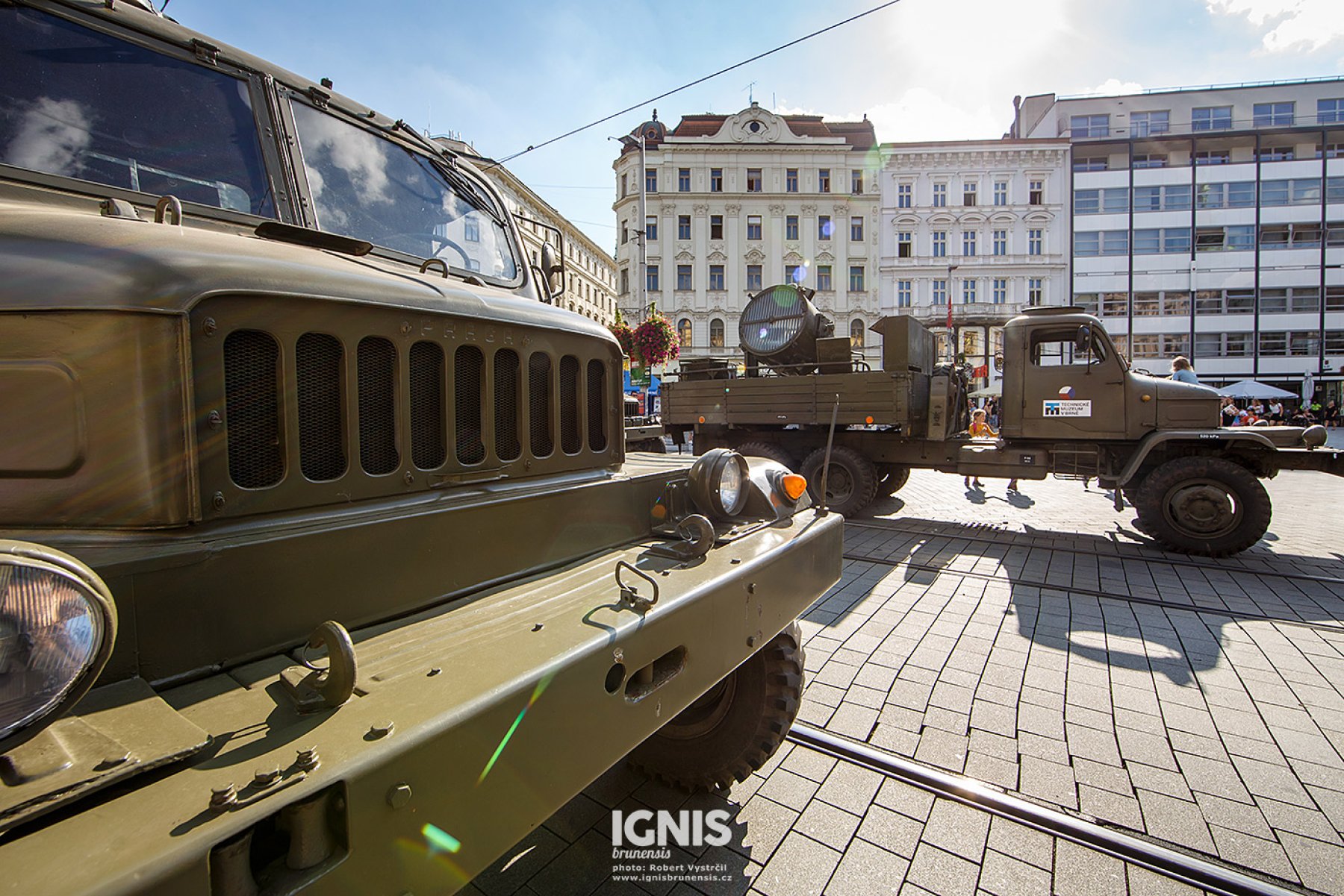 Fotoreportáž z výstavy a okružních jízd historických vozidel Technického muzea v centru Brna.