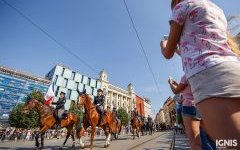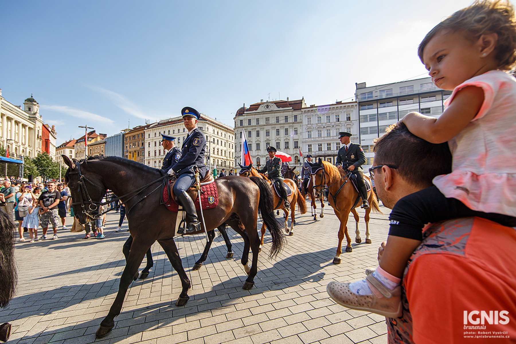 Fotoreportáž z defilé Mezinárodního policejního mistrovství v jezdectví na náměstí Svobody i ze závodů na Panské líše.