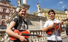 Brno-střed – Zvuky cimbálové muziky mladých interpretů ze základní umělecké školy Bojanovice přilákaly dnes odpoledne na brněnské náměstí Svobody hloučky lidí. Na náměstí se celé odpoledne odehrávaly jedny z posledních koncertů spadajících pod měsíc trvající akci Mozartovy děti.