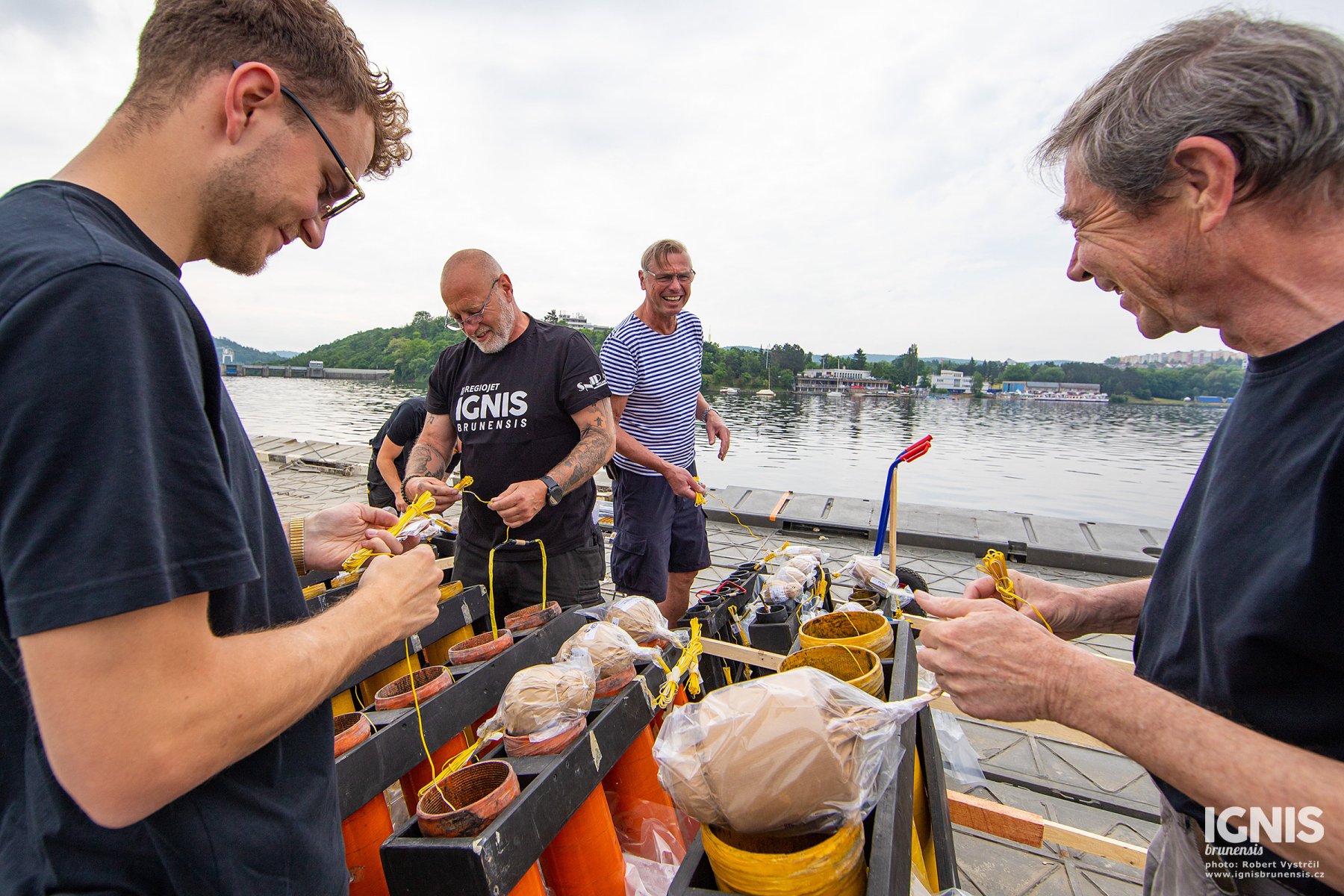 Zcela jistě v technice odpalování. V roce 2002 jsme ohňostroje ovládali manuálně, uvězněni v budce přímo na pontonu, vybaveni helmou, štítem a gumovým pláštěm, na uších sluchátka se řvoucí hudbou odposlechu, která byla stejně přehlušena duněním odpalovaných moždířů, a v časových intervalech tiskli tlačítko na klávesnici. Vše muselo být propojeno dvaceti kilometry kabelů nebo pyrotechnickým svodem. Odpalovač musel znát dokonale hudbu a s přesností asi jedné vteřiny stisknout tlačítko při ohňostroji zhruba 150krát. Byla to adrenalinová hra na piano… Za posledních dvacet let se ale uskutečnila totální digitální revoluce – díky bezdrátovému způsobu odpalování, umožňujícímu dokonalý synchron s hudebním podkladem. Letos může každý účastník využít kapacitu dvou tisíc povelů na patnáct minut show. Design je naprogramovaný s přesností jedné desetiny vteřiny, což vyžaduje dokonalou znalost ohňostrojných výrobků, preciznost při instalaci na pontonu, úhly v jednotkách stupňů, vzdálenosti s přesností centimetrů – a ohňostroj ovládáme ze vzdálenosti několika set metrů od pontonu a třeba v bílé košili.