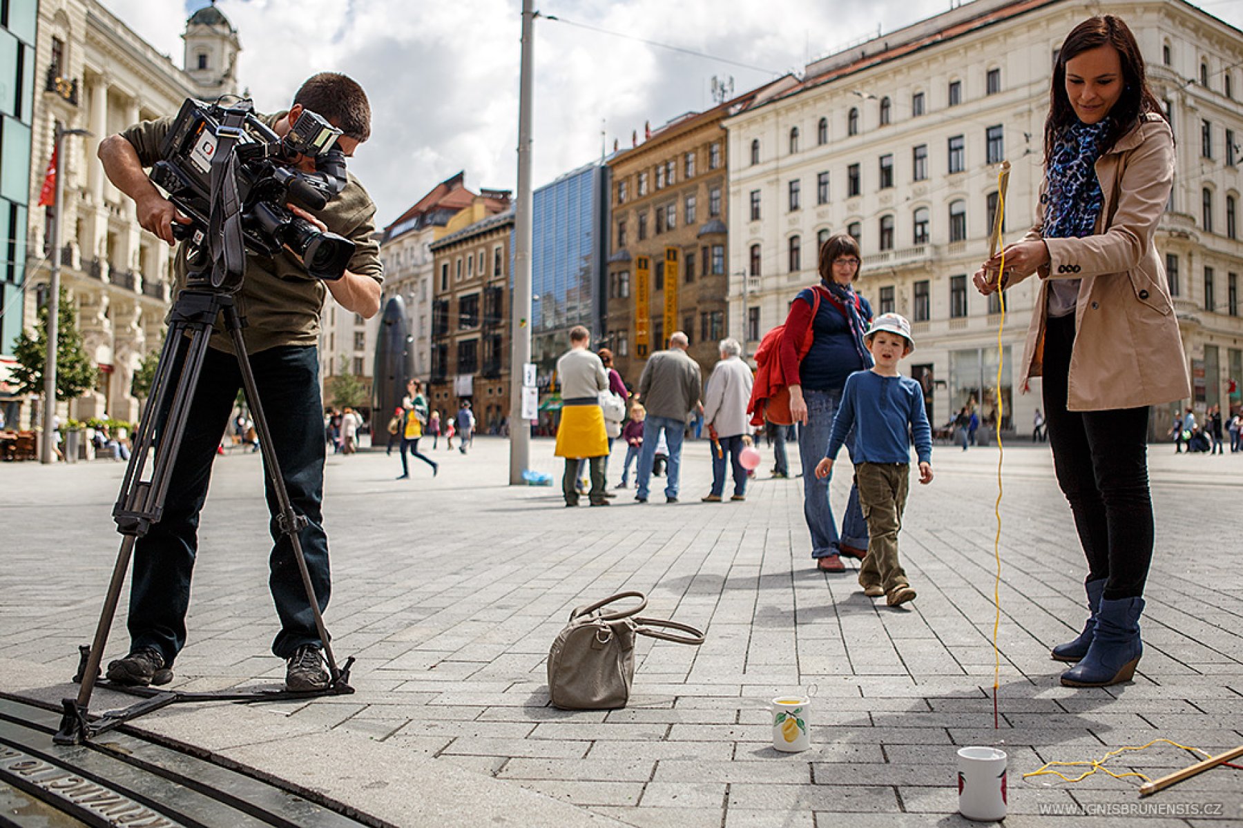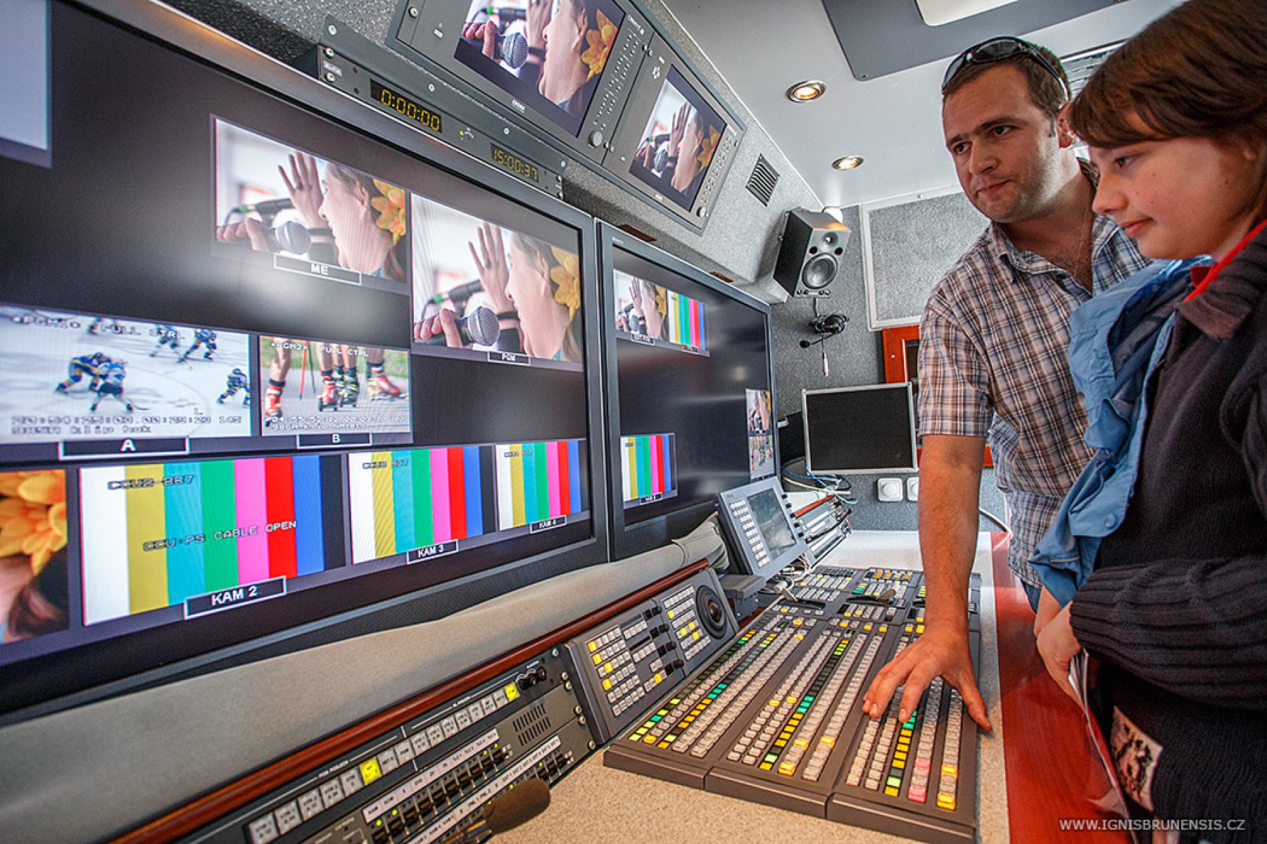 Brno, náměstí Svobody – Nejen to, jak funguje auto, ze kterého se vysílá živý televizní přenos nebo jak se vyrábějí zpomalené záběry, mohli zjistit návštěvníci dnešního televizního odpoledne na brněnském náměstí Svobody.