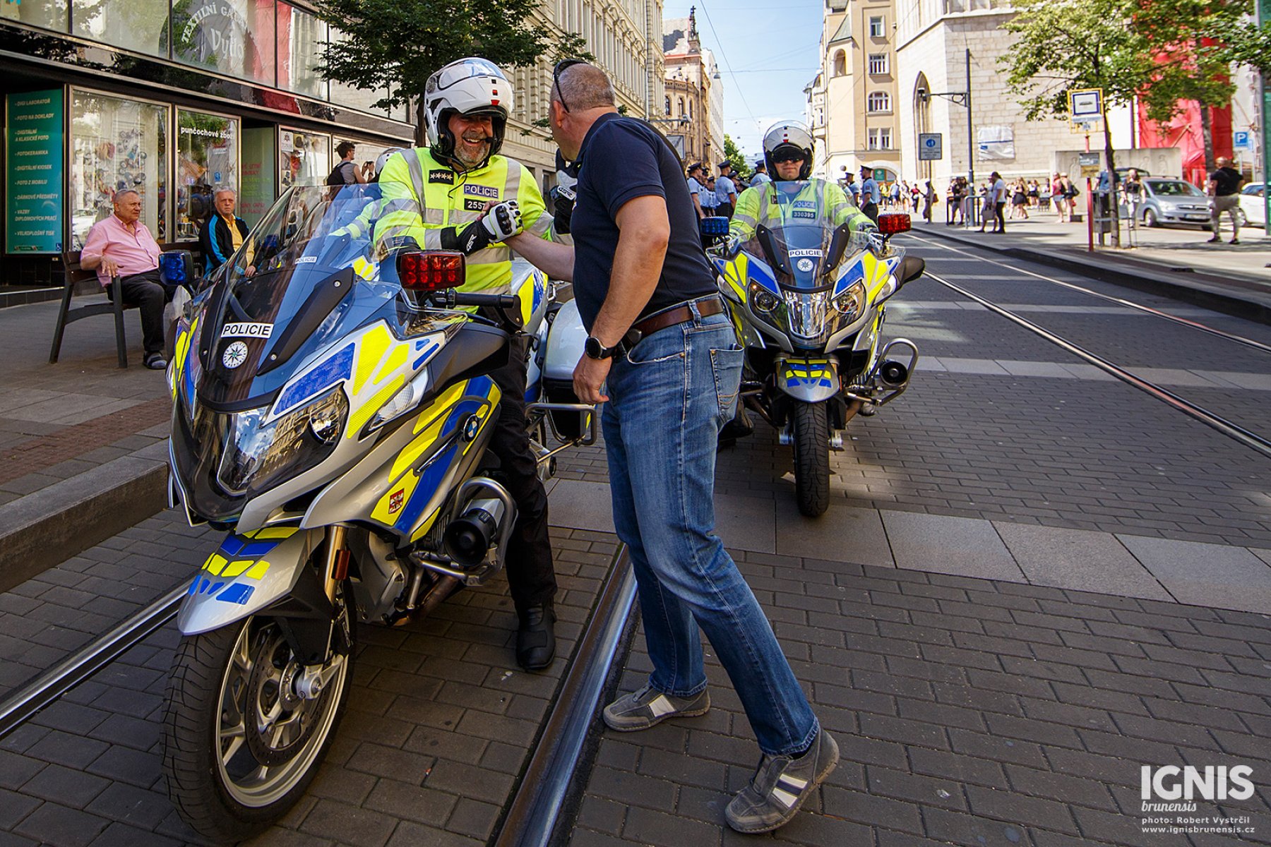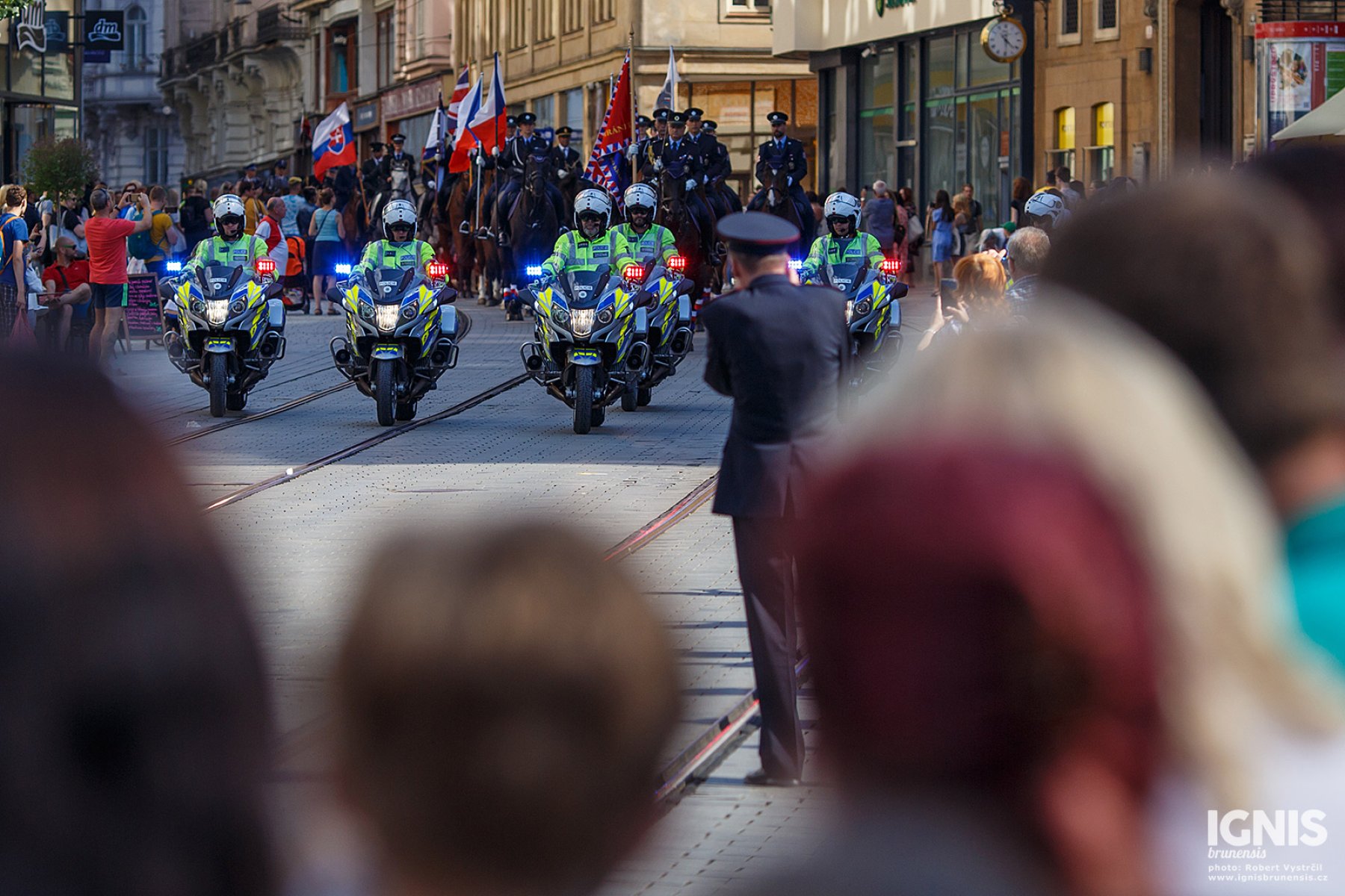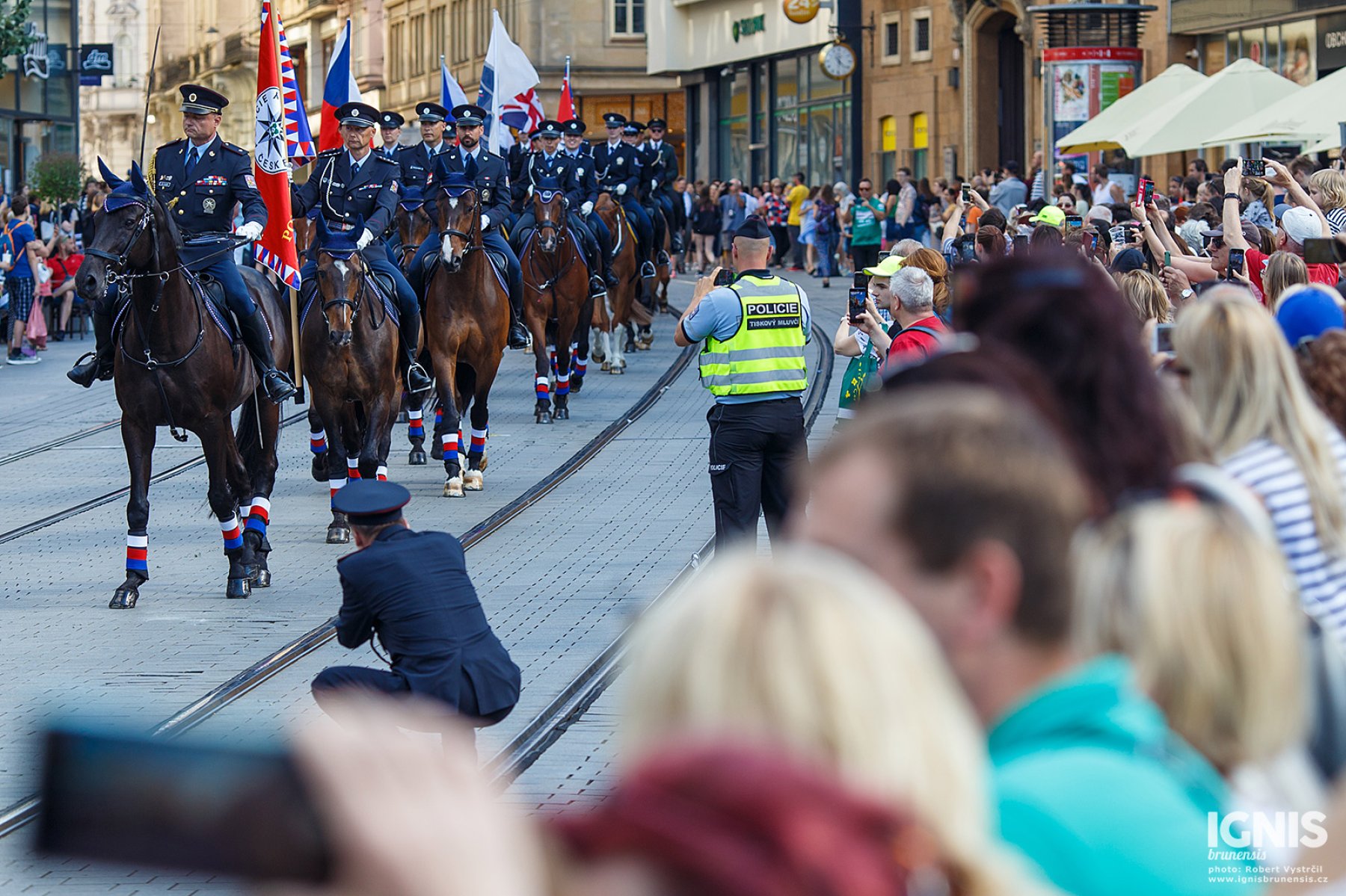 Pozdější odpoledne a sobota jsou věnovány 23. ročníku Mezinárodního policejního mistrovství v jezdectví. V 16.30 přijedou od Masarykovy ulice jízdní ekipy policistů z Česka, Slovenska, Polska, Maďarska, Německa a Velké Británie na slavnostní zahájení na náměstí Svobody. Mistrovství bude pokračovat v sobotu 18. června v jezdeckém areálu na Panské Líše, a to od 10 hodin skokovým derby, od 13.30 pak policejním parkurem.