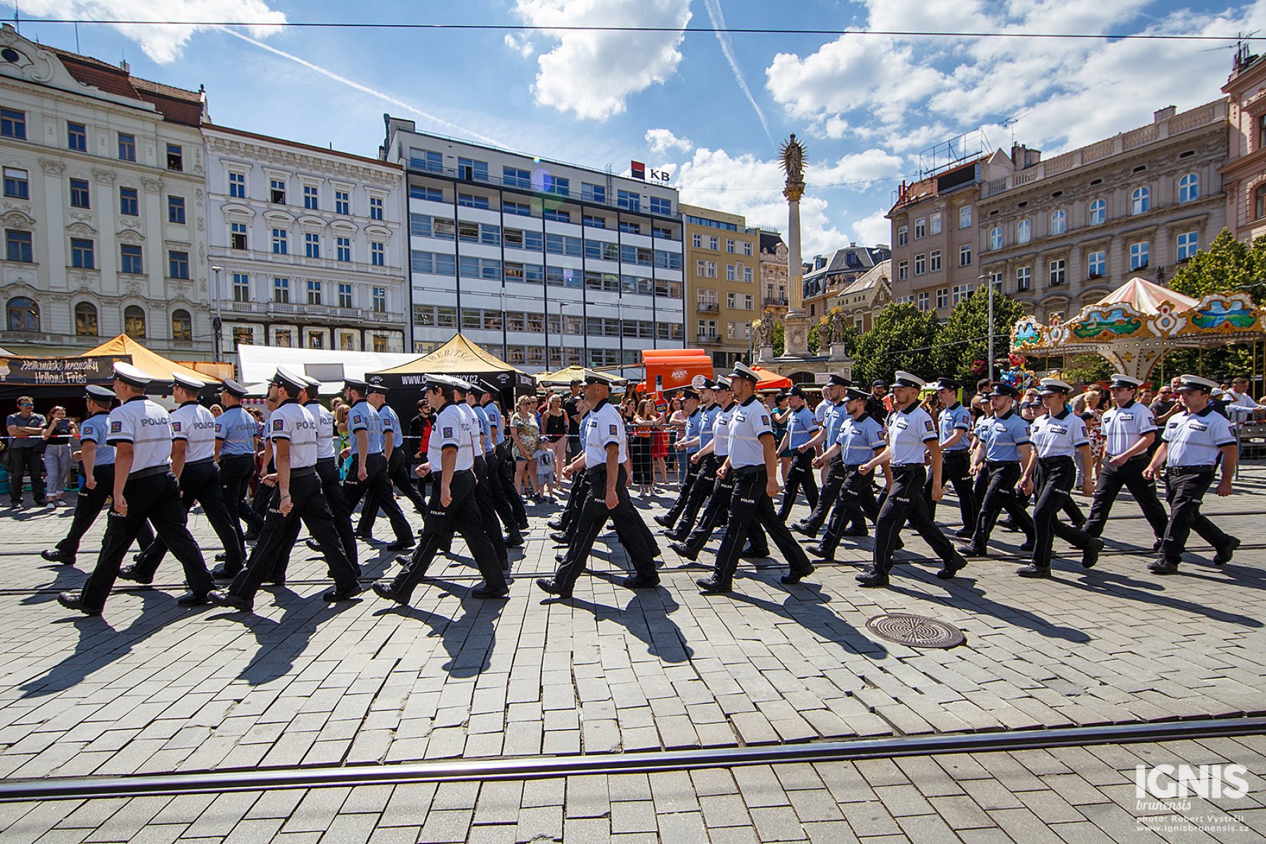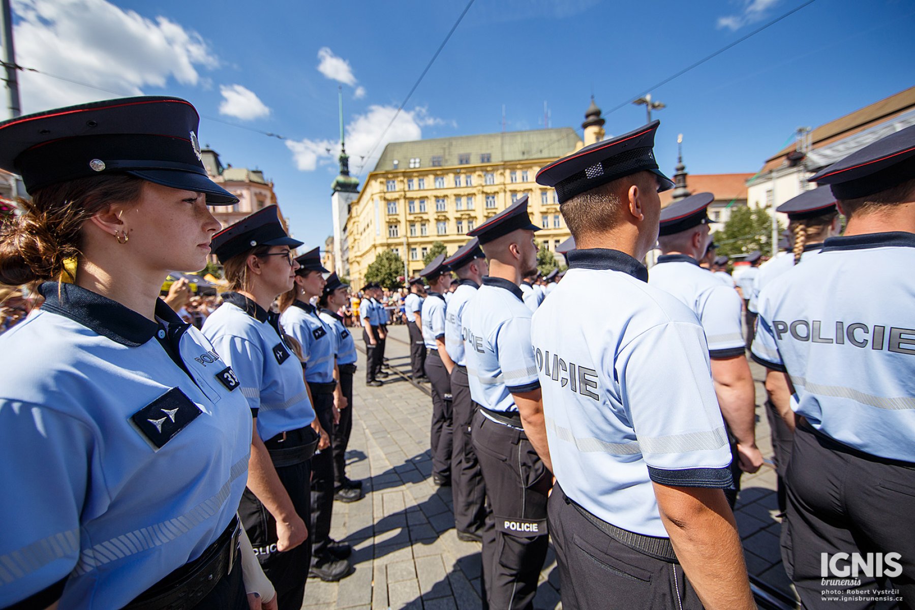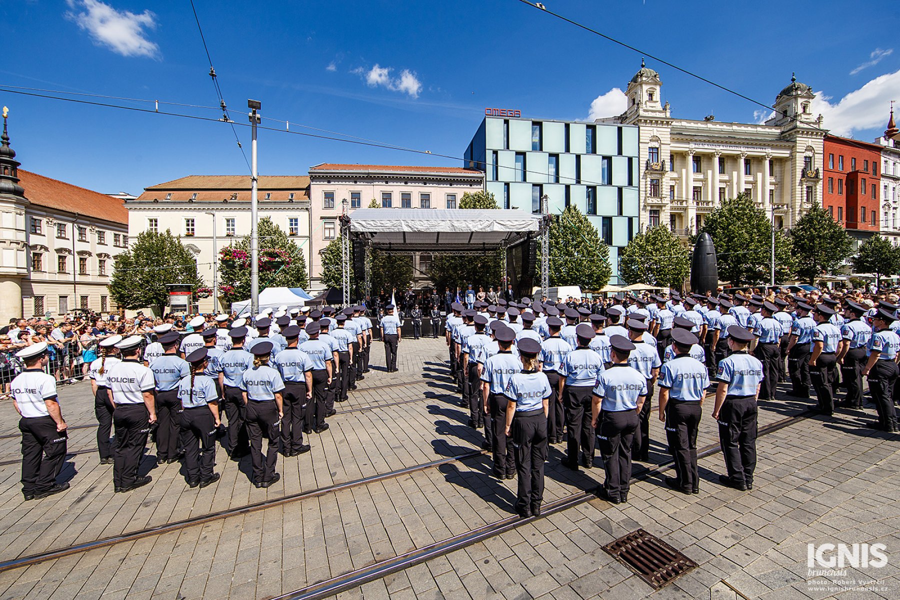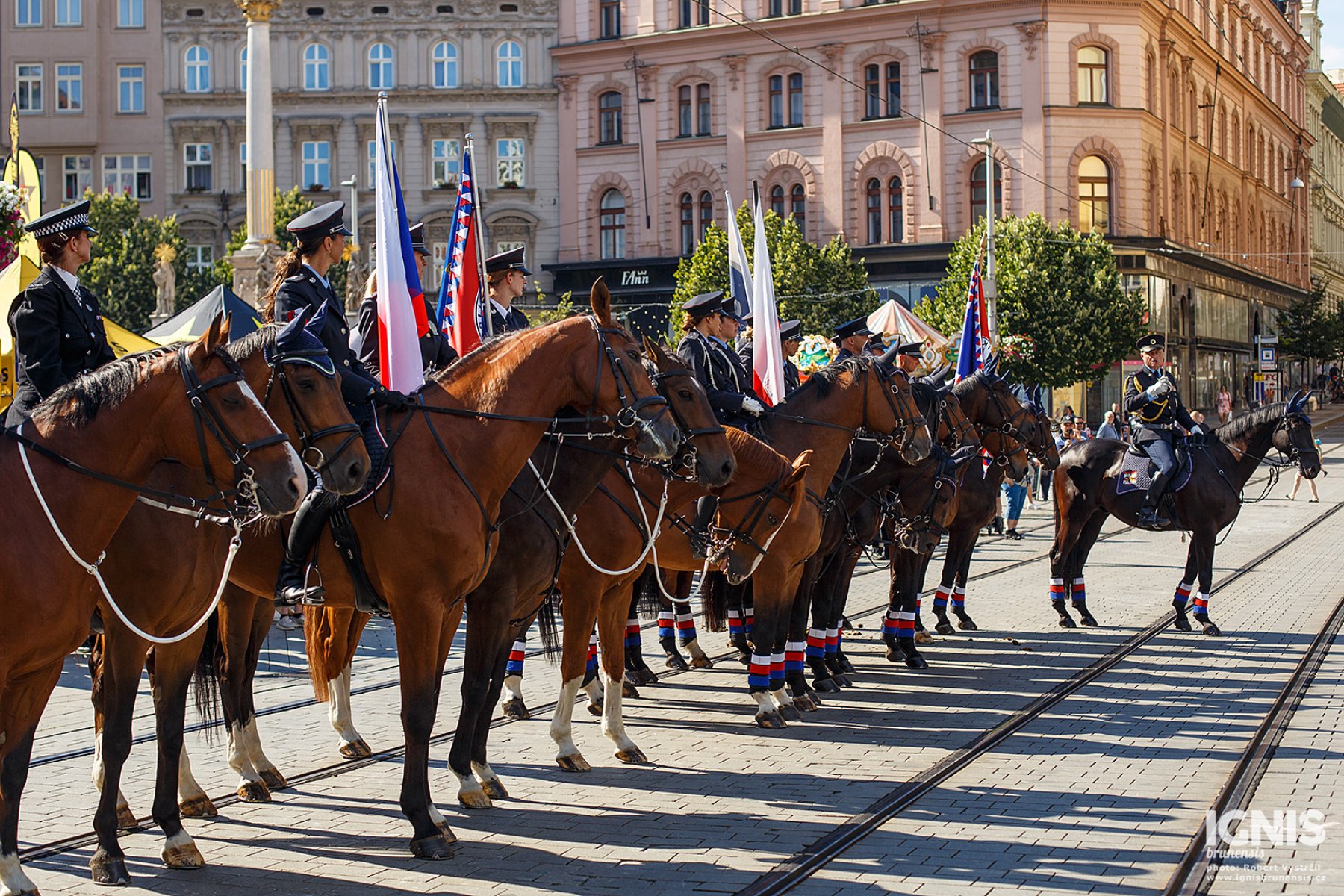 Brno - Zaplněné náměstí Svobody v Brně ožilo v pátek 17. června dopoledne ukázkami policejní techniky, odpolední program pak přináší slavnostní slib nových policistů a zahájení policejního mistrovství v jízdě na koni.