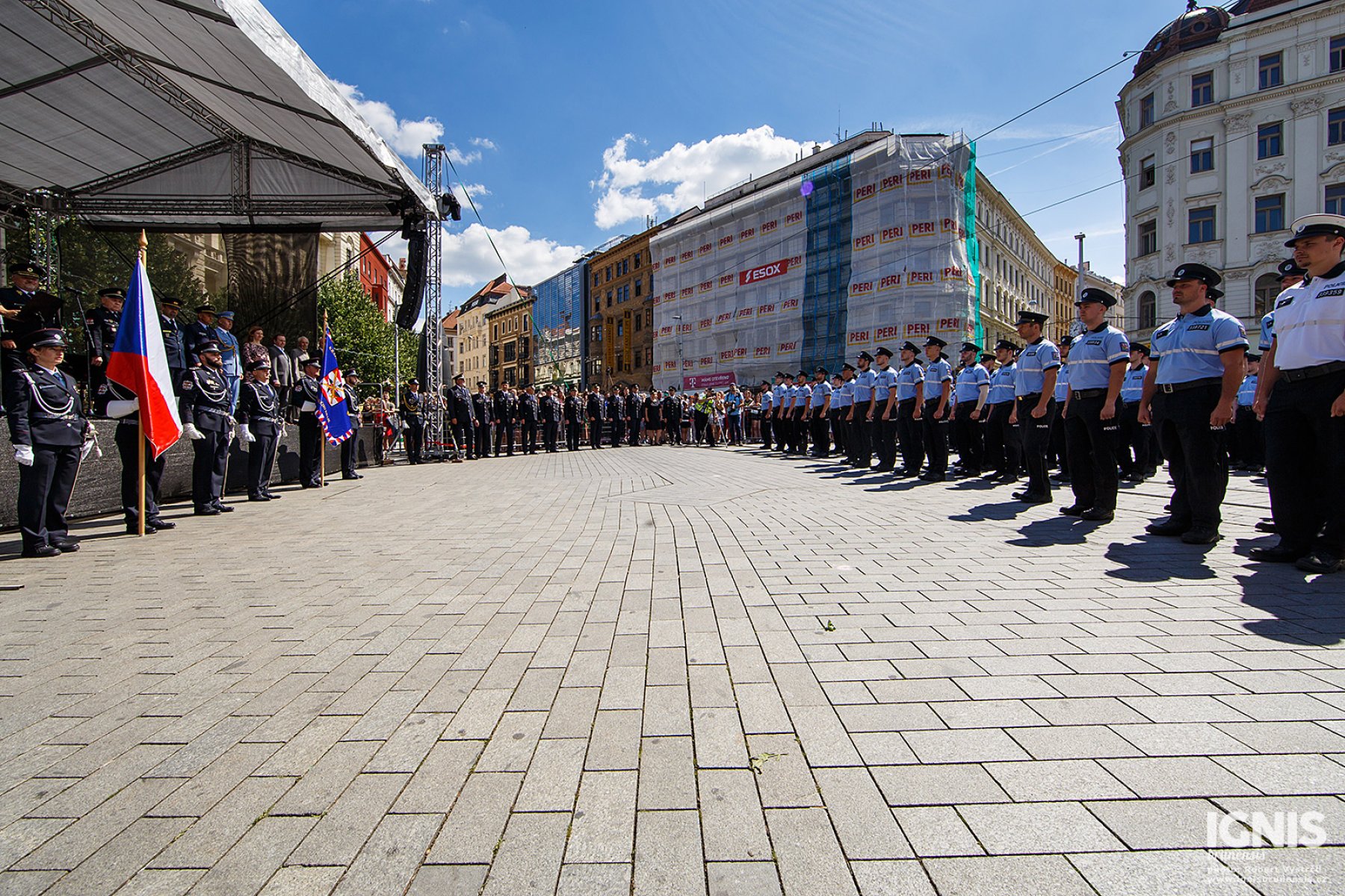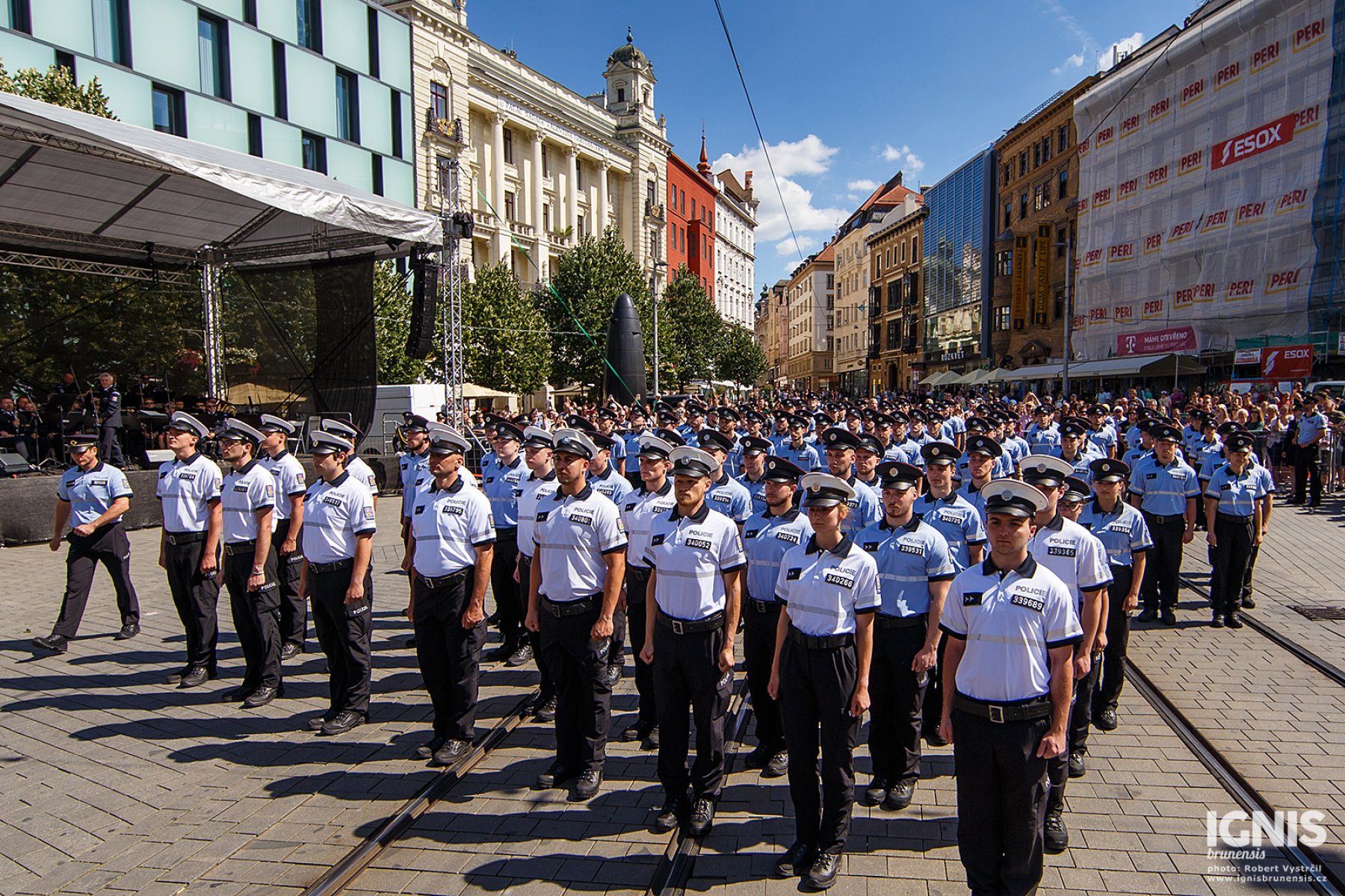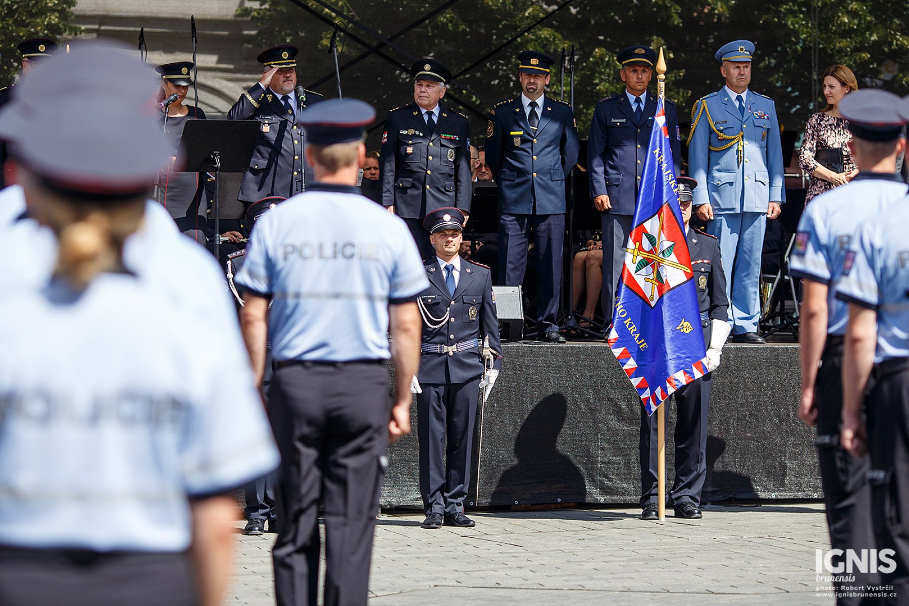 Brno - Zaplněné náměstí Svobody v Brně ožilo v pátek 17. června dopoledne ukázkami policejní techniky, odpolední program pak přináší slavnostní slib nových policistů a zahájení policejního mistrovství v jízdě na koni.