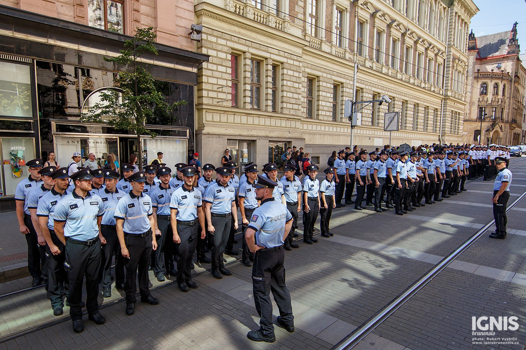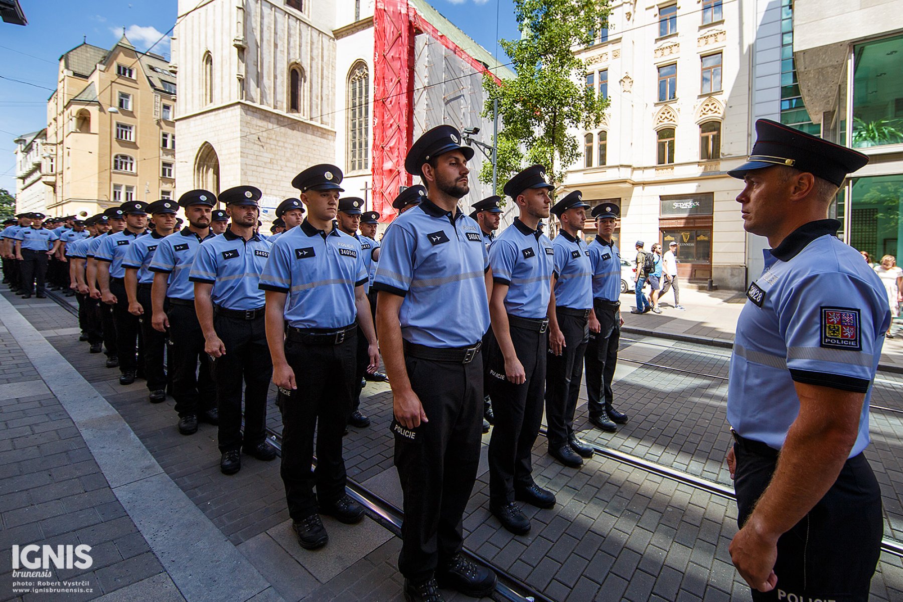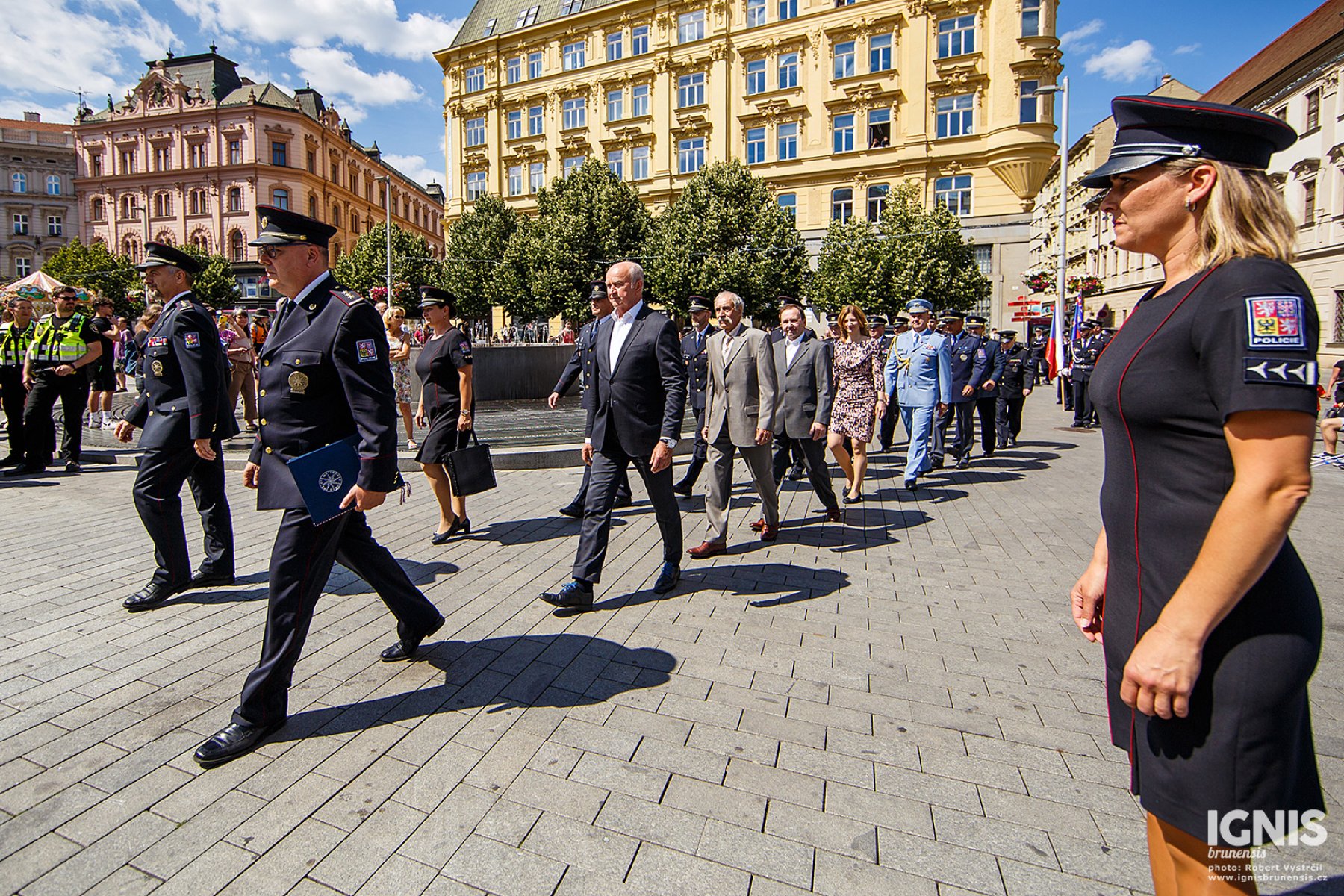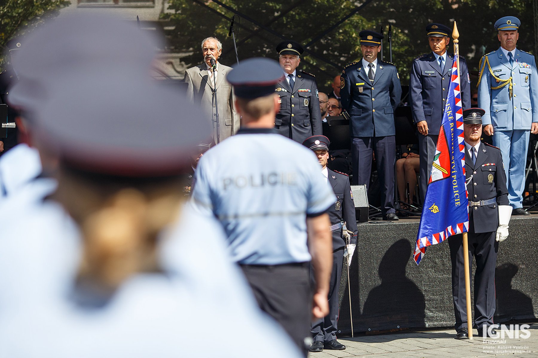 Brno - Zaplněné náměstí Svobody v Brně ožilo v pátek 17. června dopoledne ukázkami policejní techniky, odpolední program pak přináší slavnostní slib nových policistů a zahájení policejního mistrovství v jízdě na koni.