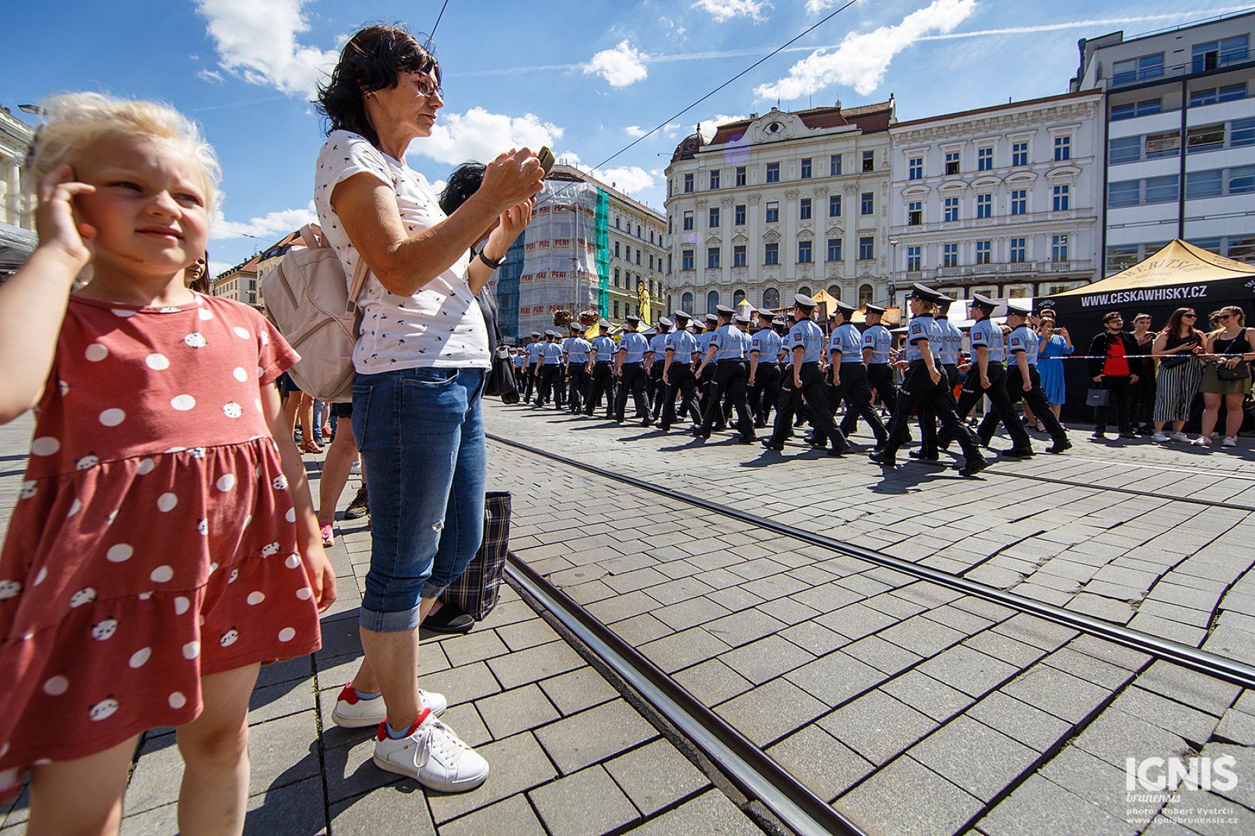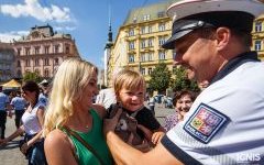 Děti i nadšenci z řad dospělých si tak mohli už dopoledne na náměstí prohlédnout současná i historická policejní vozidla, uniformy a výstroj různých jednotek. Spoustu pozornosti vzbudili například policisté v uniformách četníků z období první republiky, kteří se se zájemci ochotně fotili. Děti nadchlo i měření rychlosti průběhu provizorní uličkou pomocí radaru. „Překročil jsi povolenou rychlost, tak dostaneš diplom," vyhodnotili policisté výkon jednoho z malých závodníků.