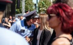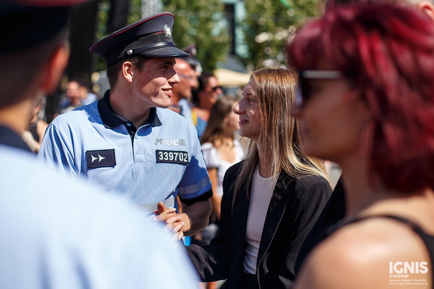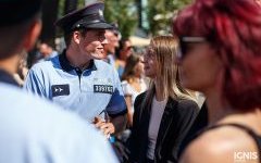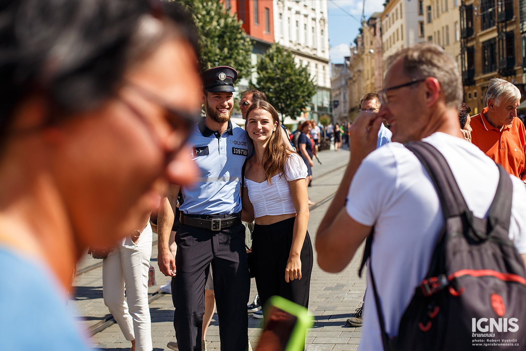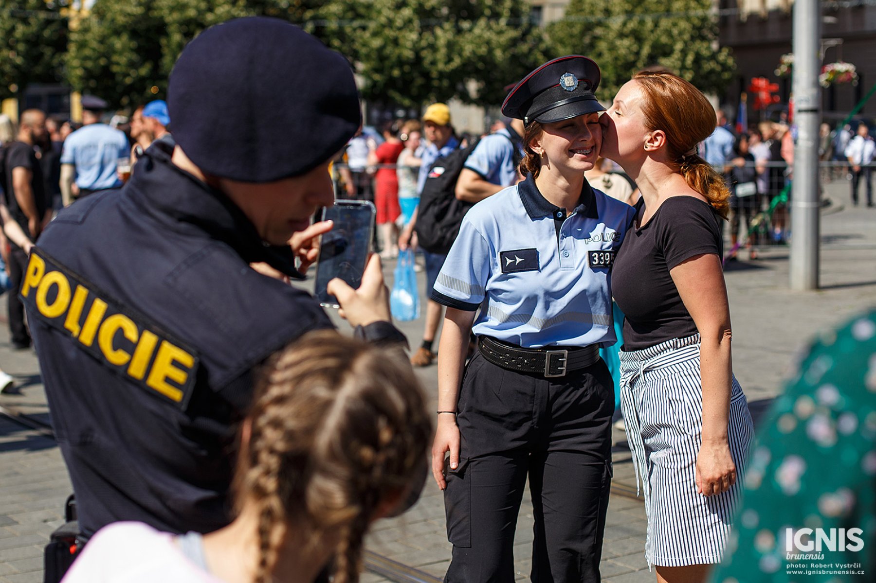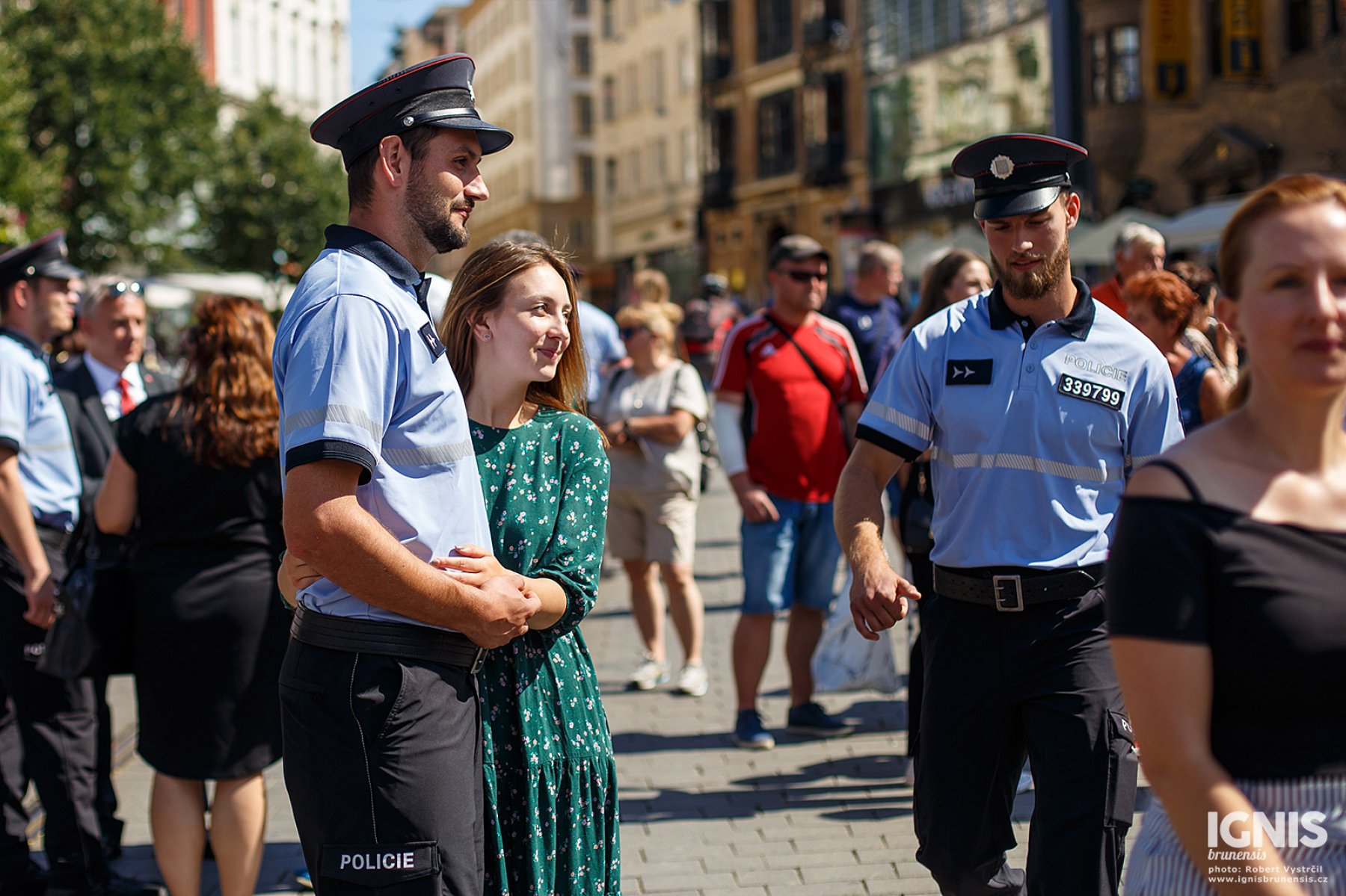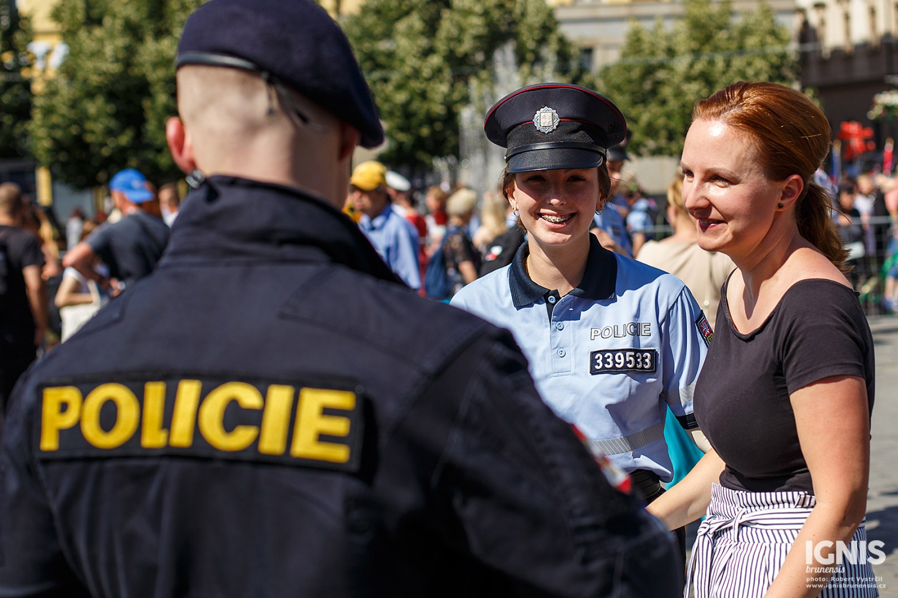 Náměstí bylo zaplněné lidmi zejména při ukázkách policejní práce. Speciální pořádková jednotka předvedla svou fyzickou připravenost chůzí po rukou a několika salty, poté policisté učili děti různé chvaty s využitím pěstí i teleskopického obušku, které si zájemci mohli hned vyzkoušet. Děti také potrénovaly svou fyzičku klikováním, ti nejvytrvalejší zvládli v horkém počasí i 30 kliků.