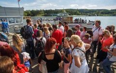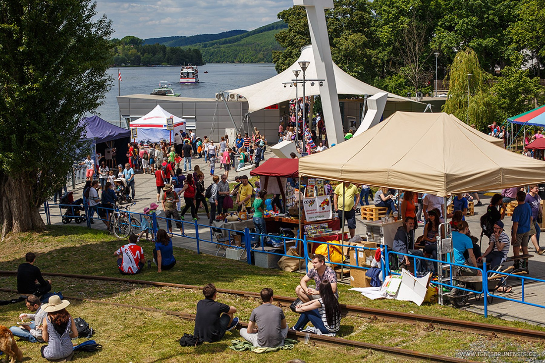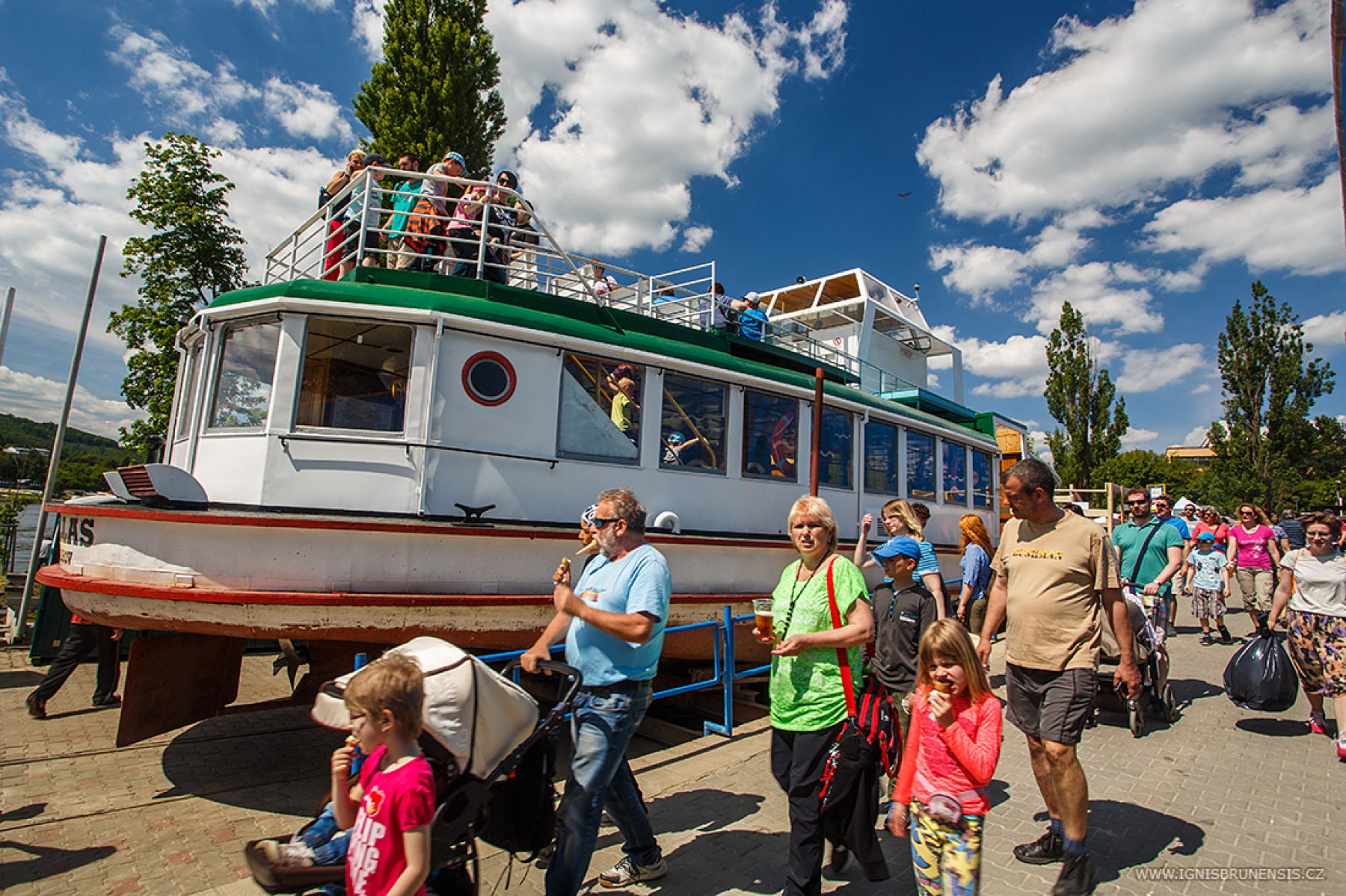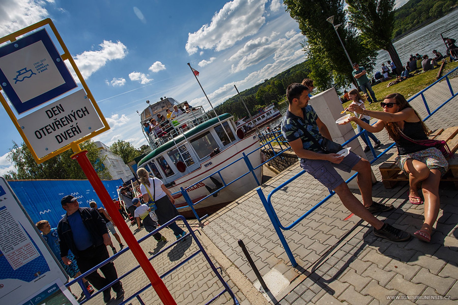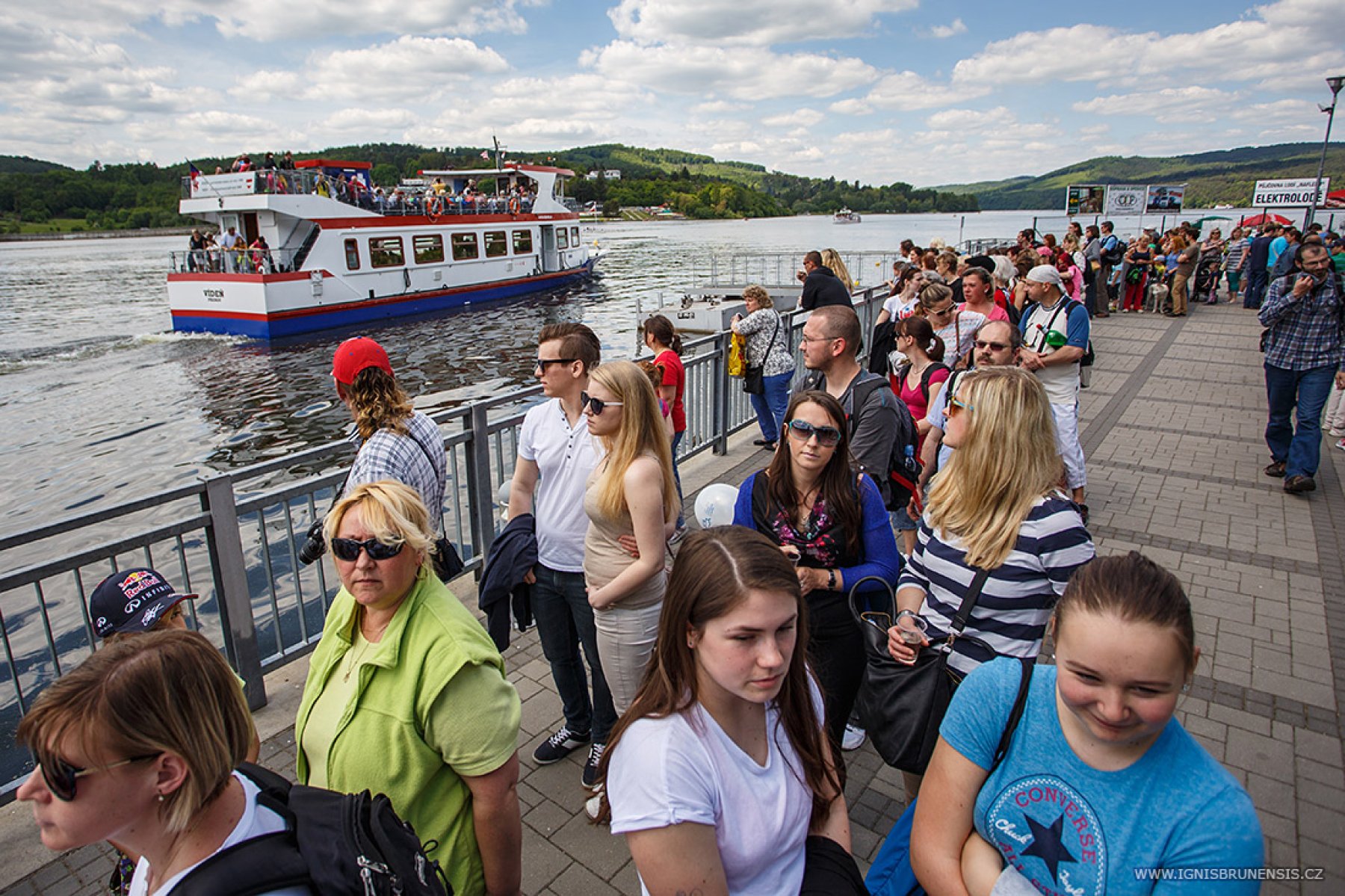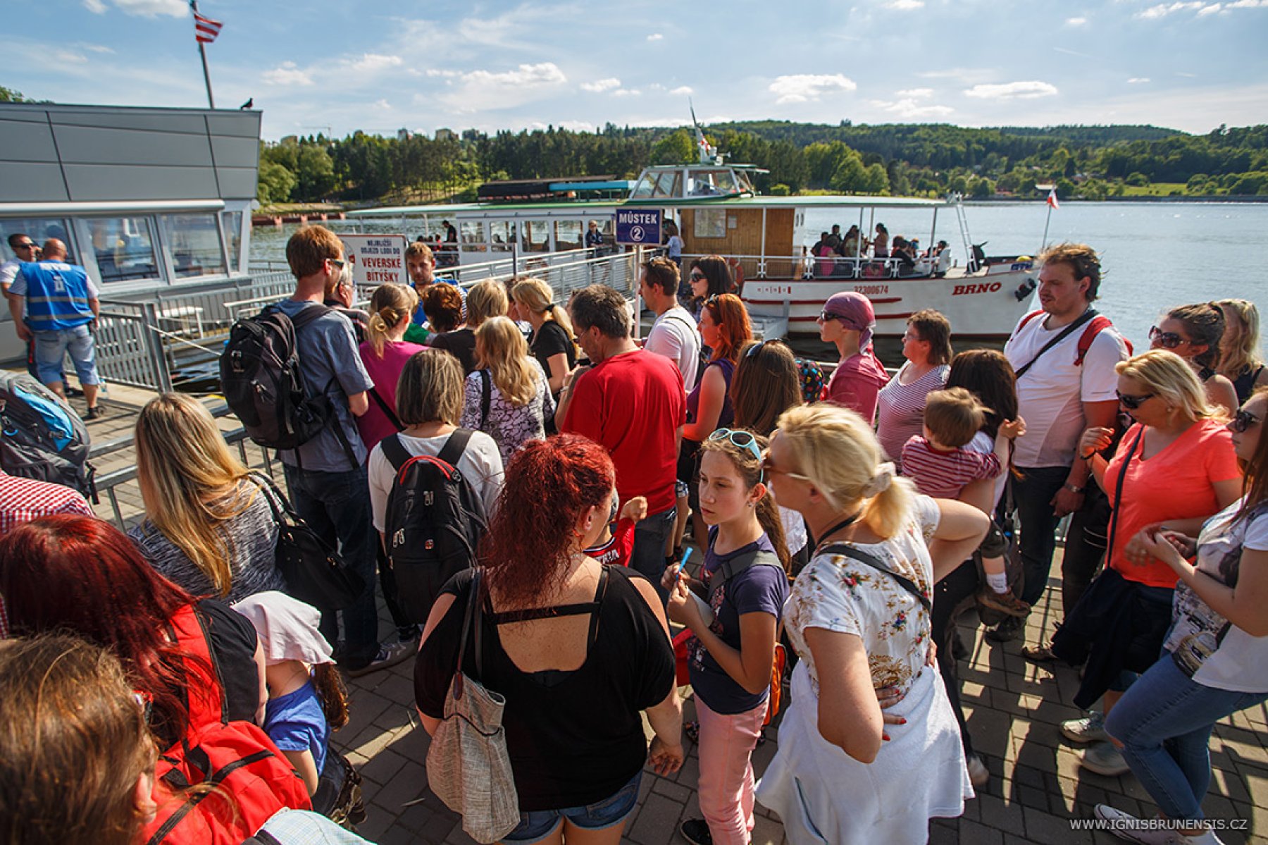 Brněnská přehrada - Nejen slunečné počasí lákalo dnes Brňany či návštěvníky města na přehradu. Velkým lákadlem byla také možnost plavby parníkem po celý den zadarmo. Už dopoledne tak lidé tvořili v přístavišti dlouhé fronty.