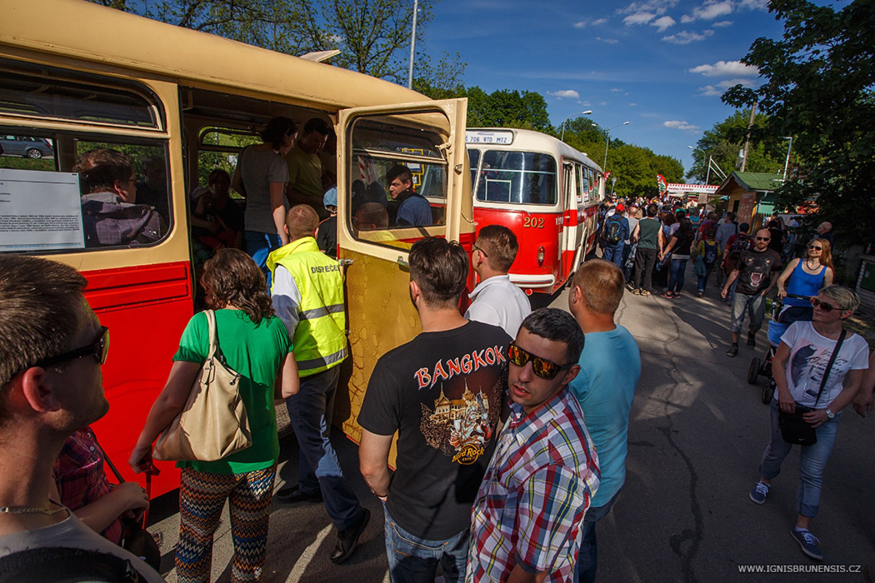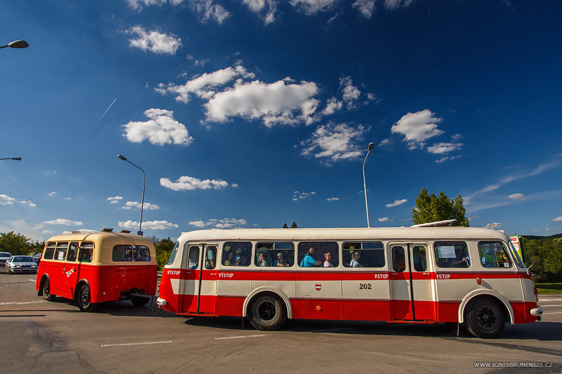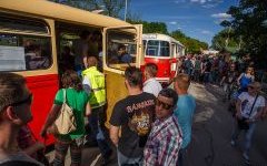 Návštěvníci, kteří se sjížděli na oslavy 70. výroční brněnské lodní dopravy, mohli k přepravě z centra města až na Brněnskou přehradu využít speciálně pro dnešní akci připravené historické autobusy. Přeprava byla na rozdíl od parníku placená - jednosměrná jízdenka stála 30 korun, zpáteční 50 korun. Hlavně pro děti byla jízda historickými autobusy a pak parníkem opravdovým zážitkem.
