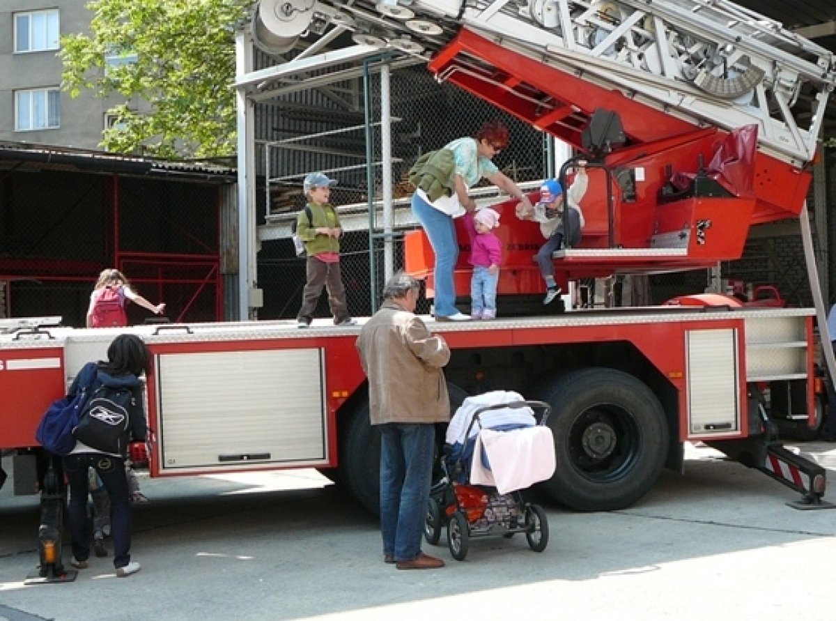 Kromě prohlídky hasičské výstroje, výbavy a automobilů si mohou nejmenší návštěvníci požární stanice vyzkoušet uhasit umělý domeček nebo se nechat vytáhnout do výšky a pohoupat v evakuačním postroji.