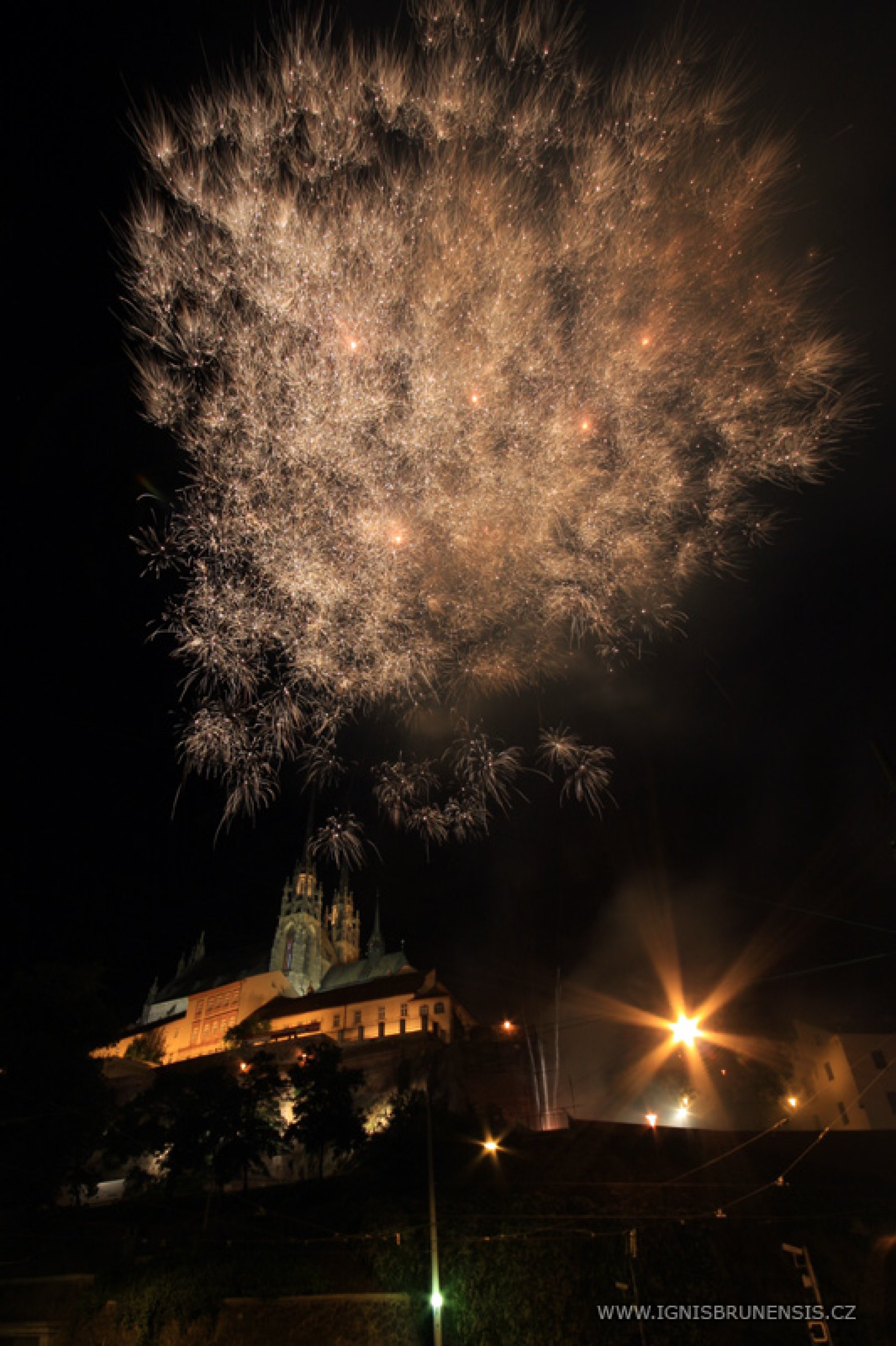 Už ve čtvrt na jedenáct byly prostory pod Petrovem zaplněné, ale další milovníci ohňostrojů stále přicházeli, aby si našli co nejlepší místa. S půl jedenáctou se ozvaly první rány a nad hlavami se všem divákům rozzářily první ohnivé plameny a květy, které uvedly tanec draka. Za doprovodu hudby z filmu Dragon se na obloze střídaly zlaté proudy připomínající dračí krajinu s vrcholky hor. Závěrečný veselý a pestrobarevný karnevalový tanec doprovázela hudba Antonína Dvořáka.