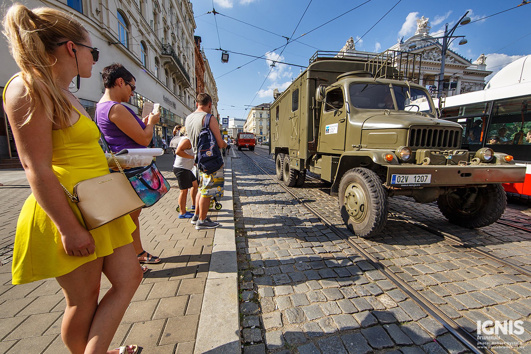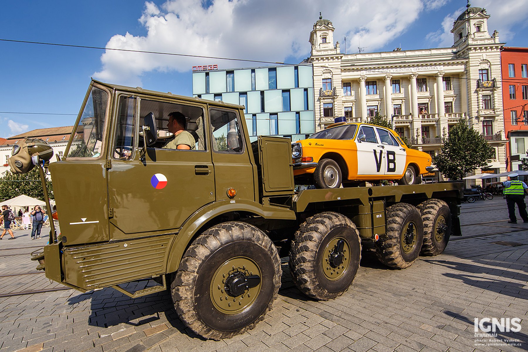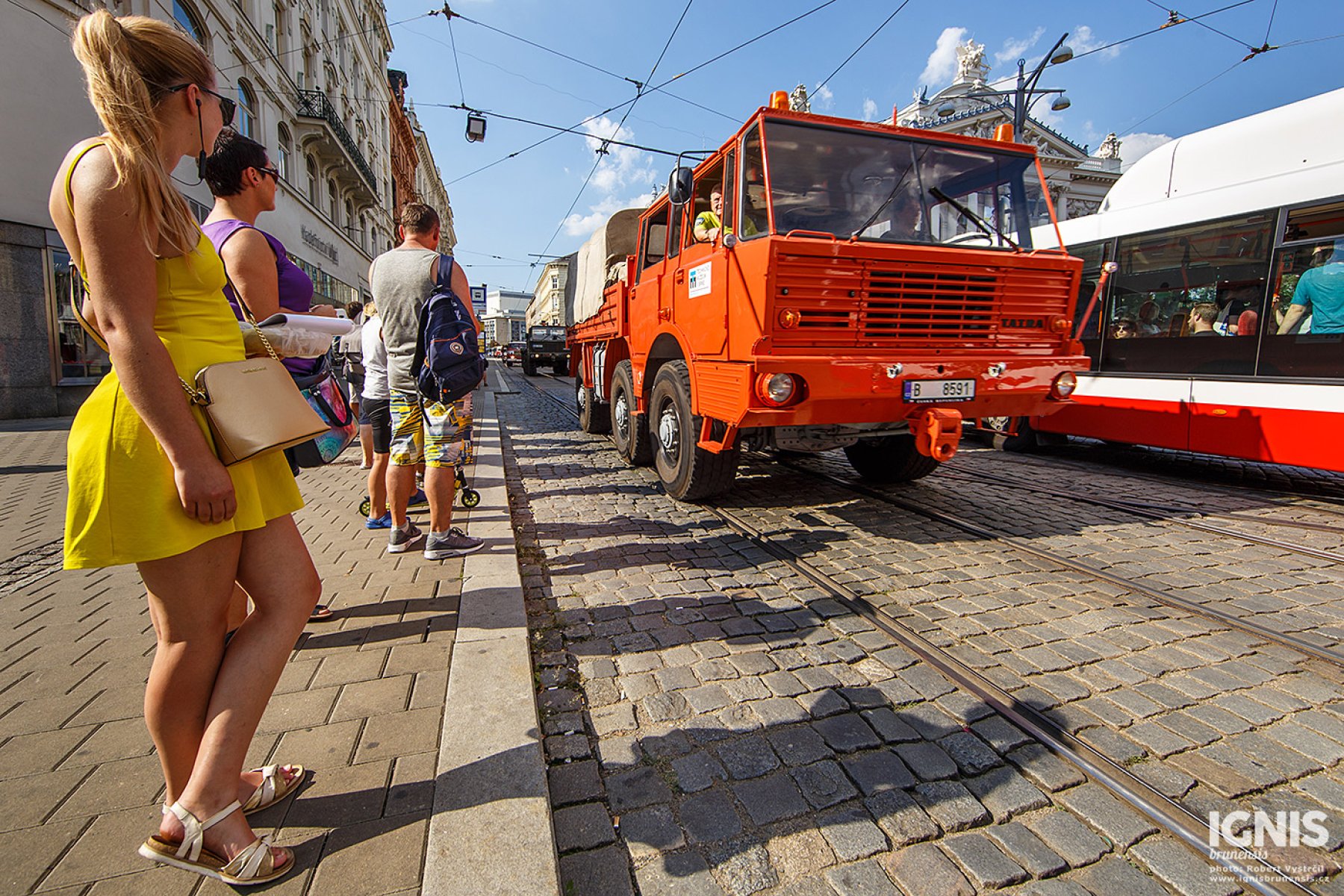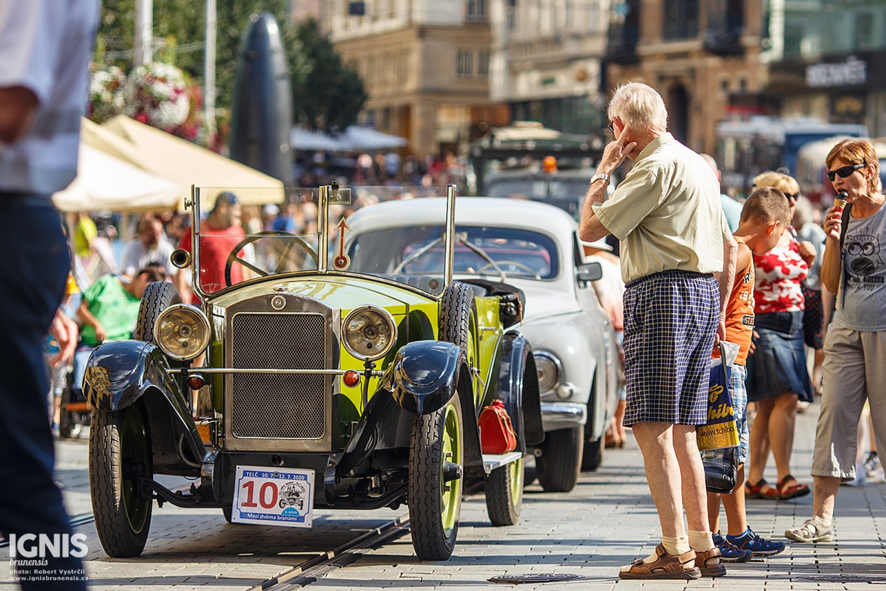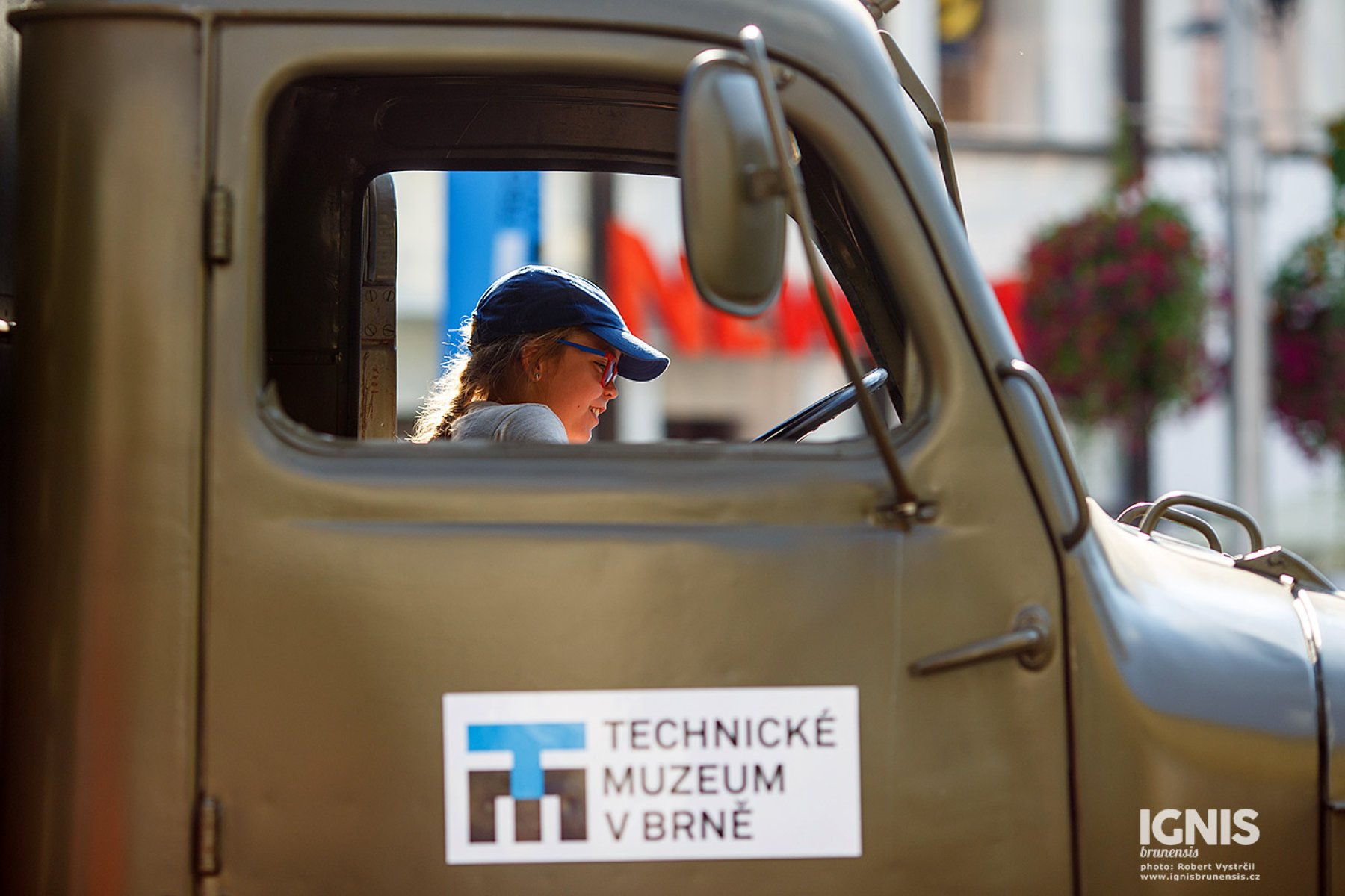 Fotoreportáž z výstavy a okružních jízd historických vozidel Technického muzea v centru Brna.