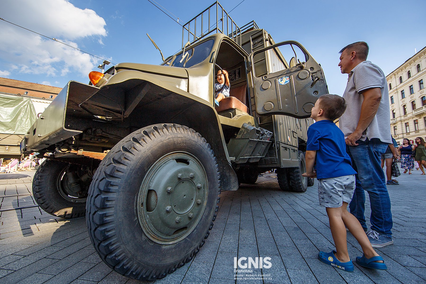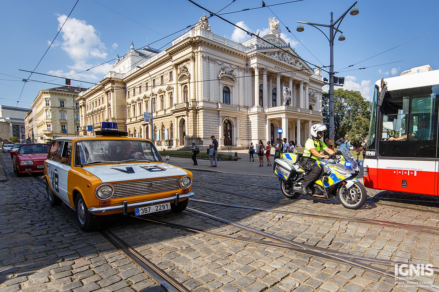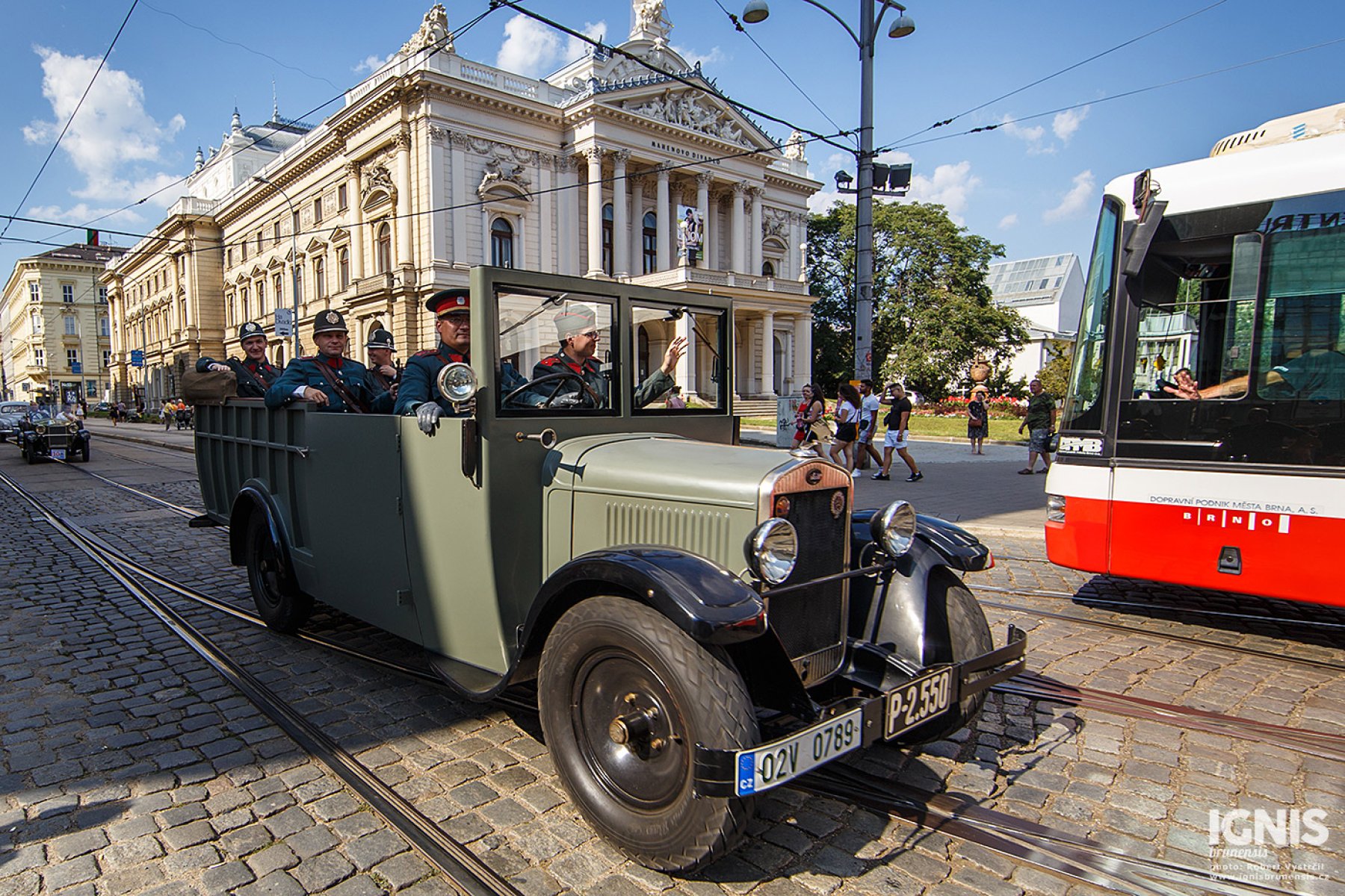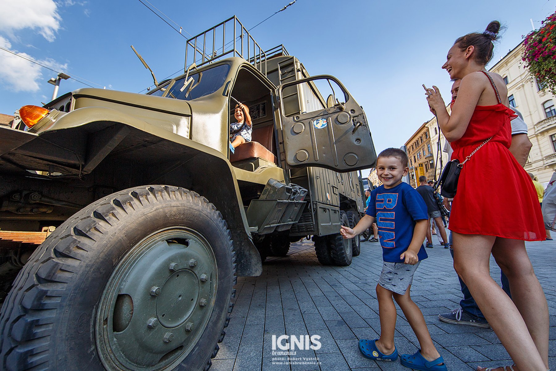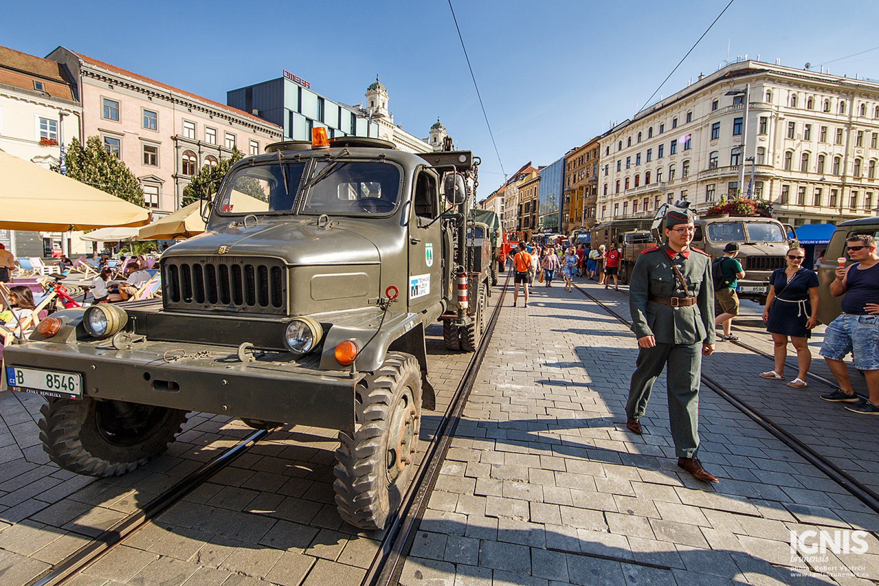 Fotoreportáž z výstavy a okružních jízd historických vozidel Technického muzea v centru Brna.