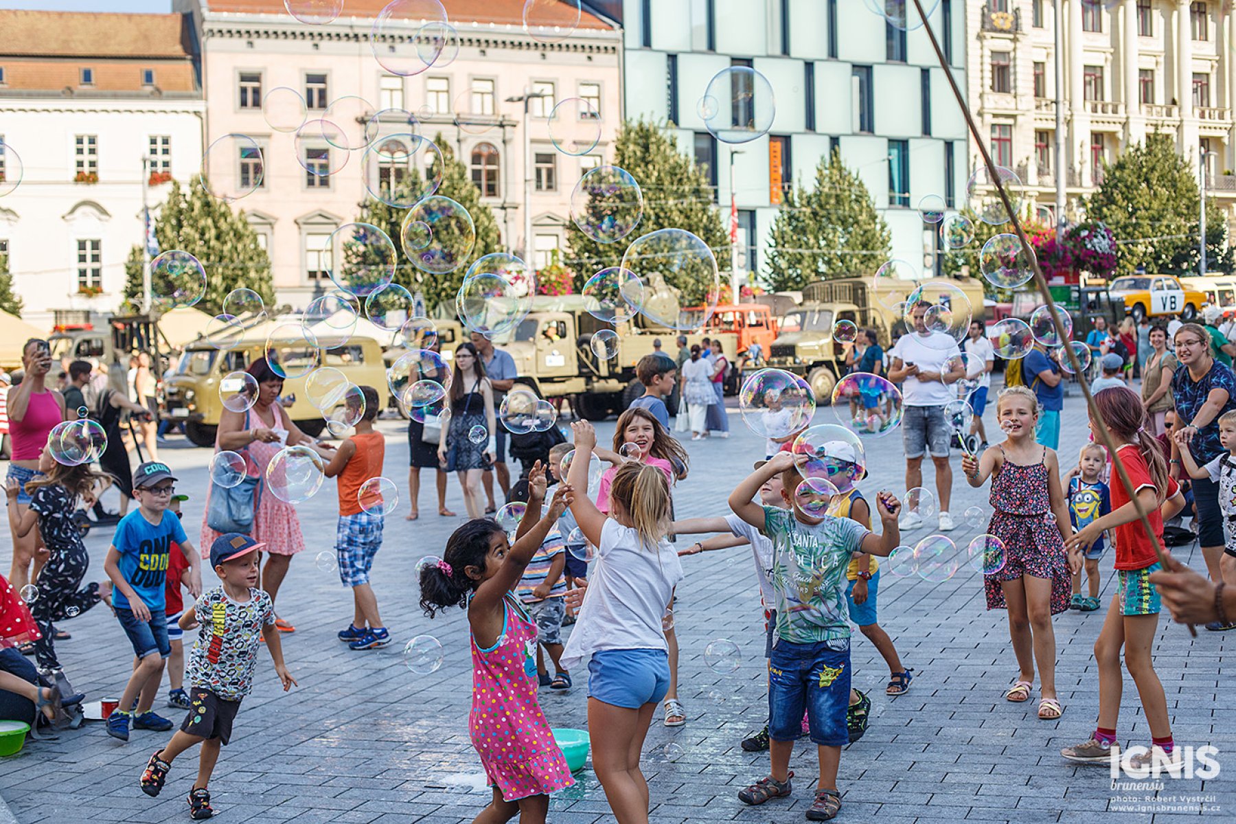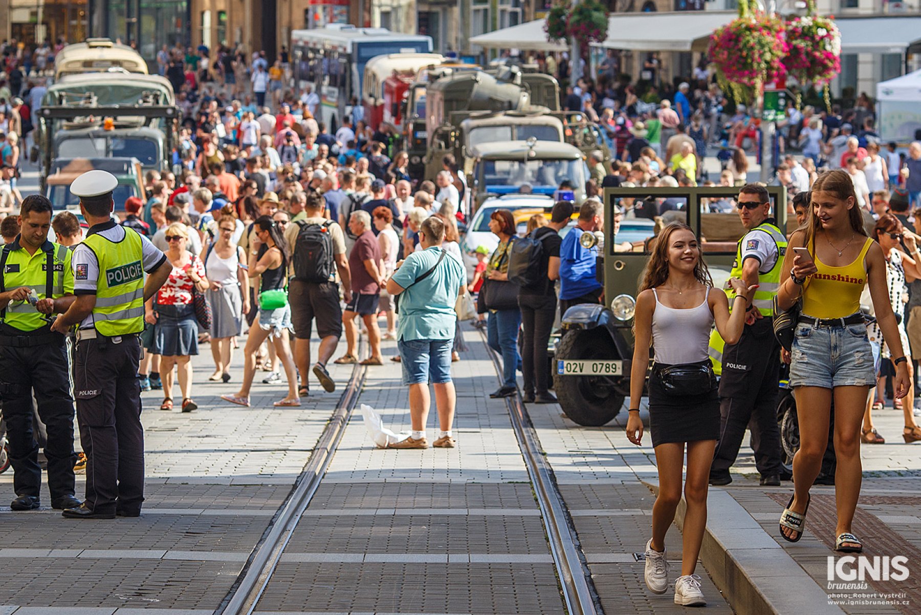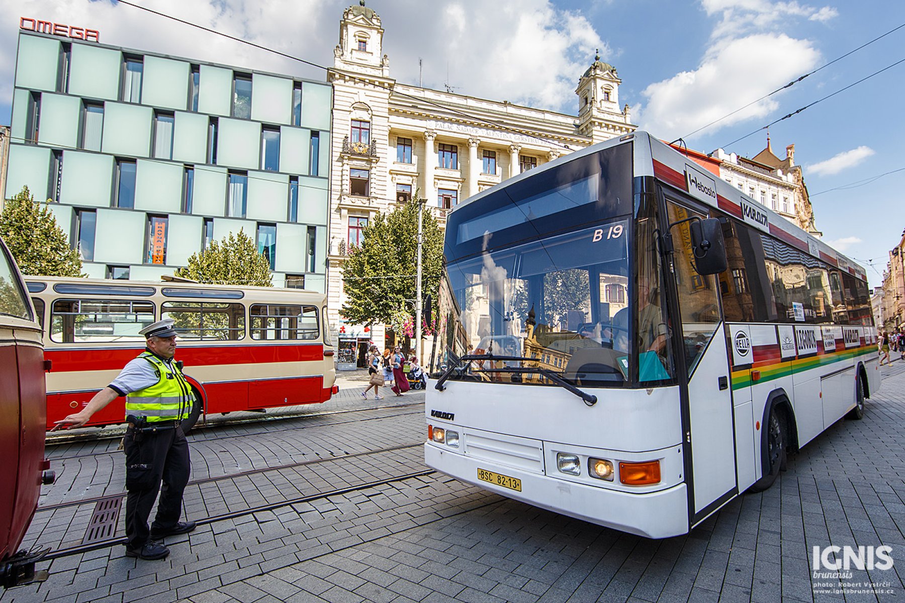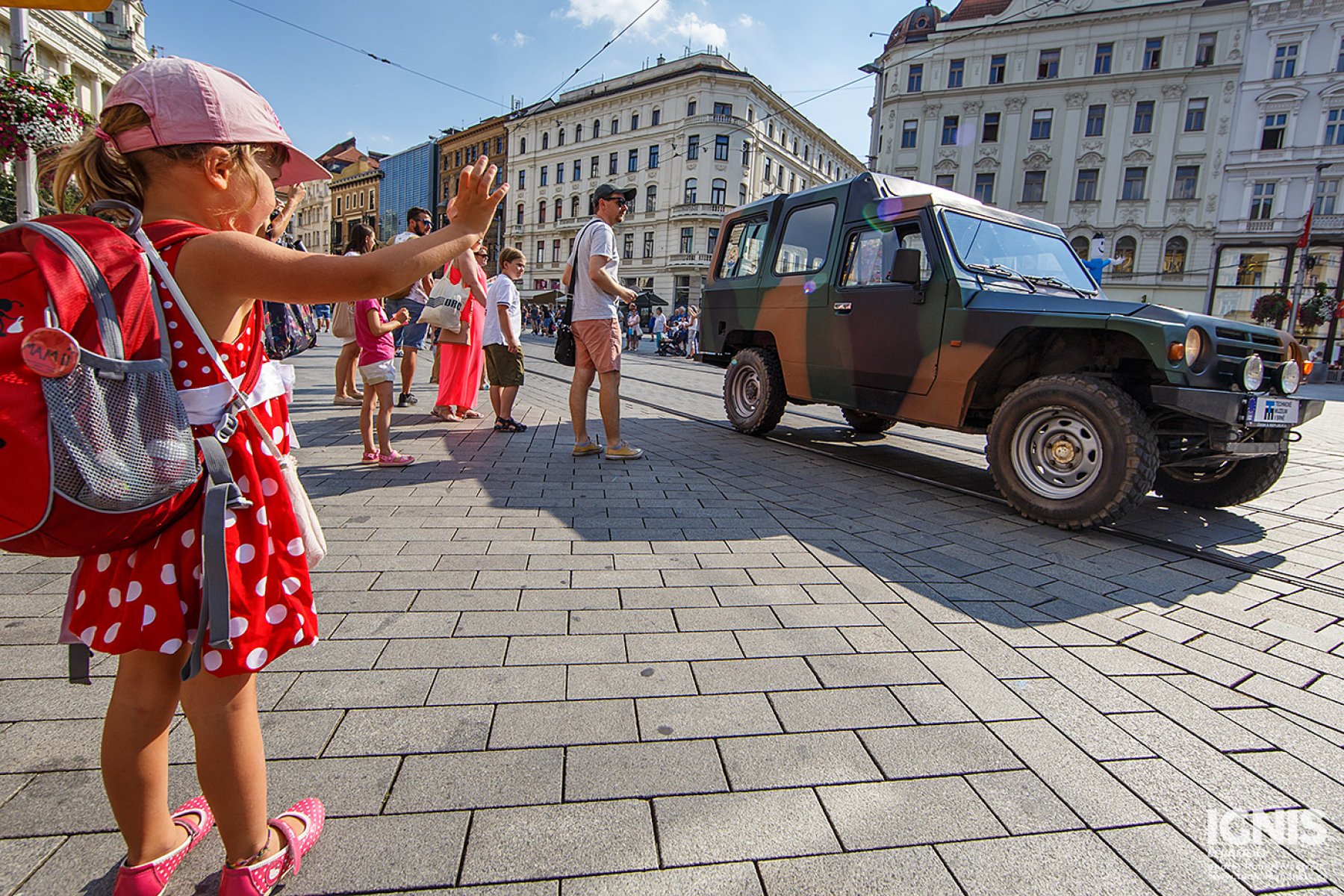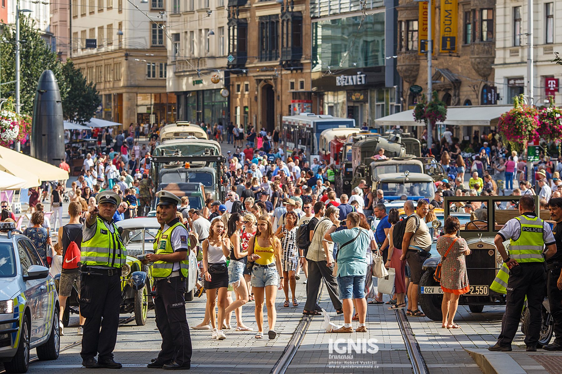 Fotoreportáž z výstavy a okružních jízd historických vozidel Technického muzea v centru Brna.